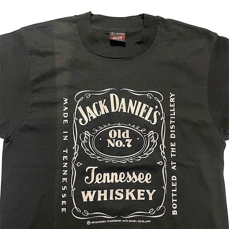 新品デッドストック 90s ジャックダニエル ビンテージ Tシャツ ヘビーコットン JACK DANIEL'S USA製 FRUITS OF THE LOOM BEST(黒,Mサイズ)袖裾シングルステッチ