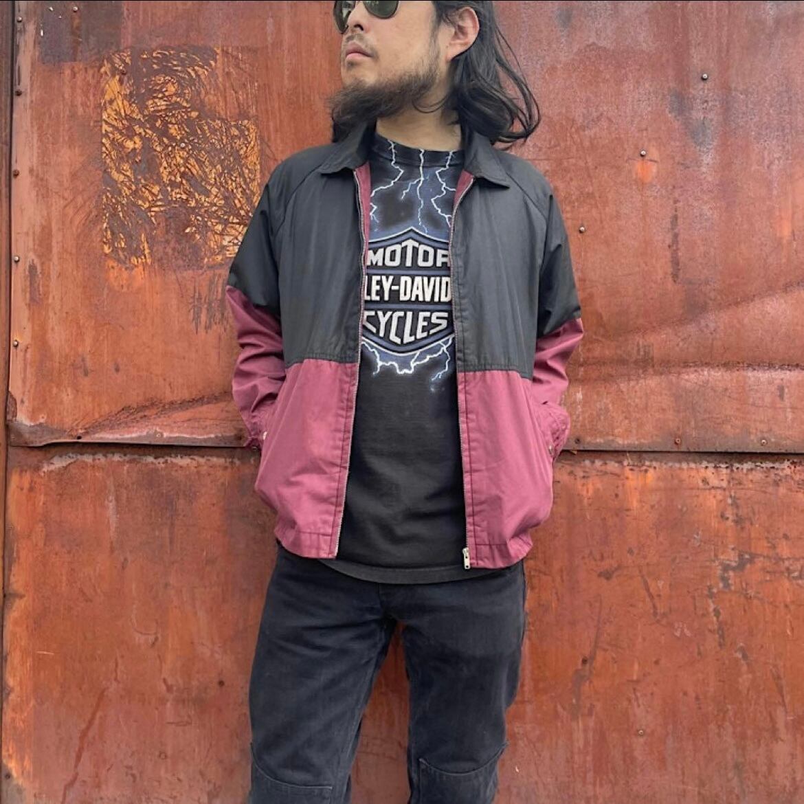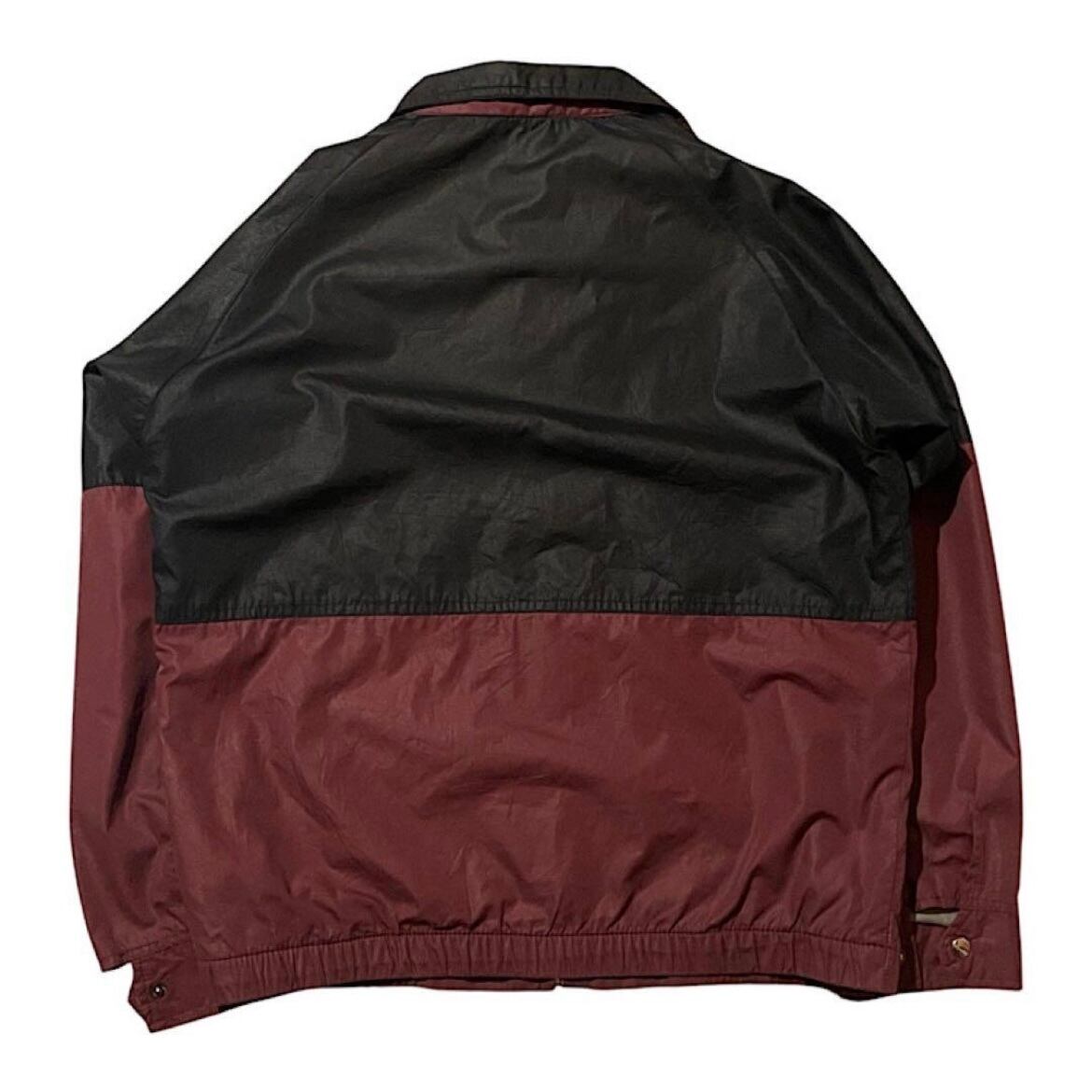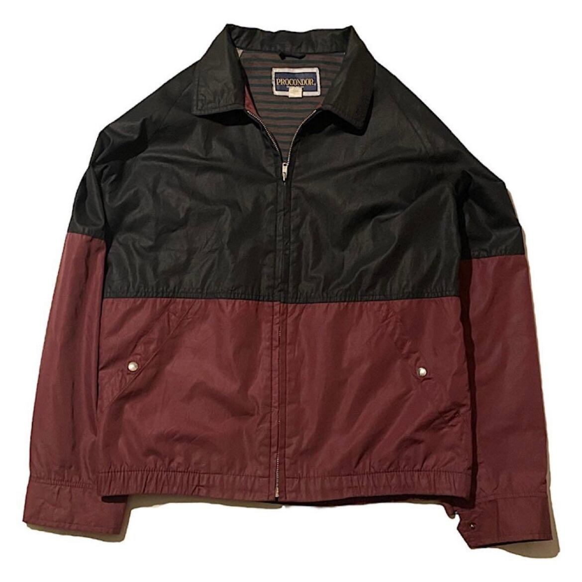 90s 国産 ビンテージ スウィングトップ 短丈スペシャル配色 ナイロンジャケット ラグランスリーブ(バイカラー 黒×赤茶,Mサイズ)