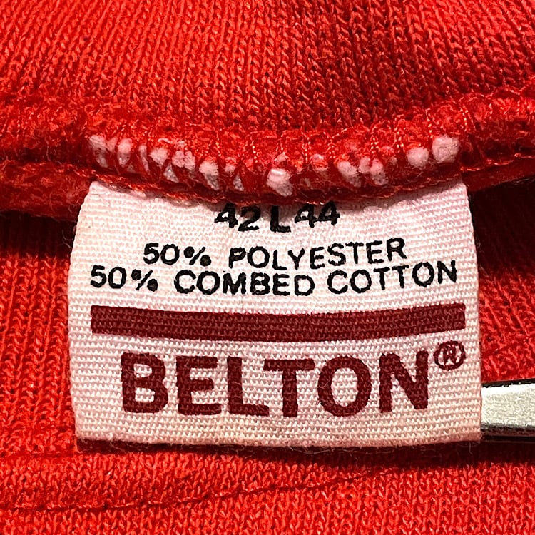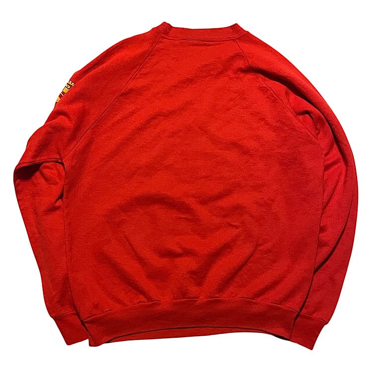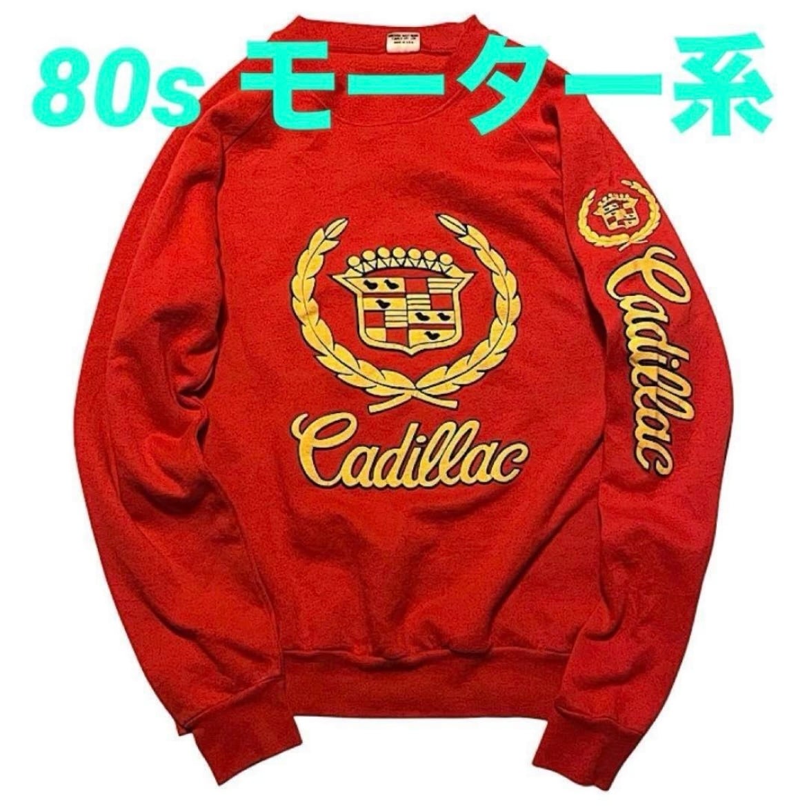 80s キャデラック ビンテージ スウェット 発泡プリント USA製 Cadillac BELTON モーター系(赤,Lサイズ)