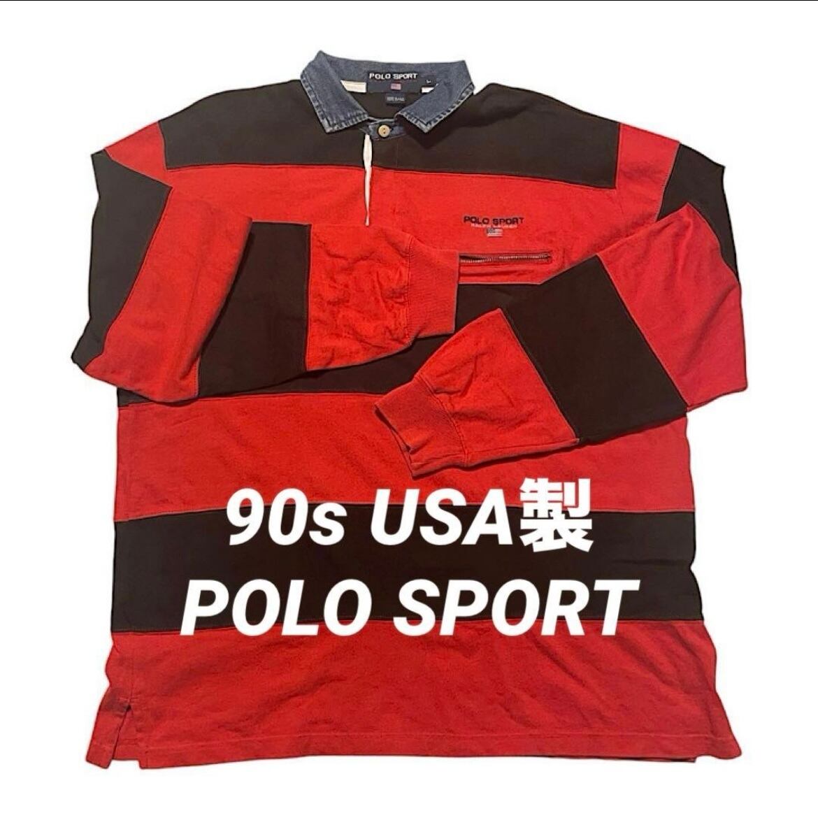 激レア 初期モデル 90s POLO SPORT ビンテージ ポロシャツ USA製 ラガーシャツ 胸ポケット付き ポロスポーツ ビッグサイズ(Lサイズ表記 XLサイズ程度)