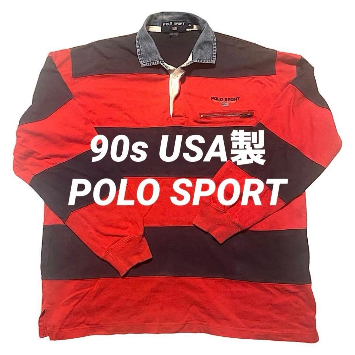 激レア 初期モデル 90s POLO SPORT ビンテージ ポロシャツ USA製 ラガーシャツ 胸ポケット付き ポロスポーツ ビッグサイズ(Sサイズ表記 M-Lサイズ程度)