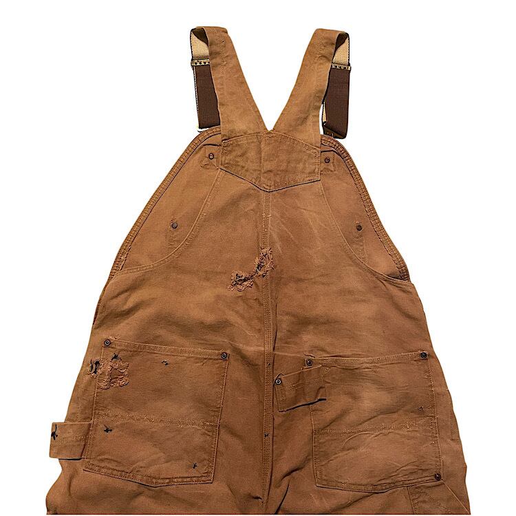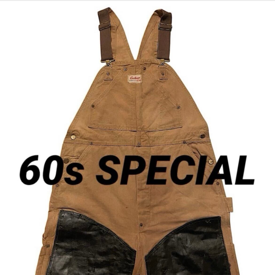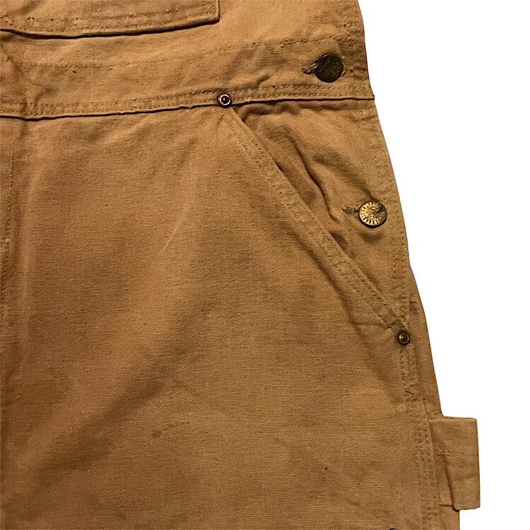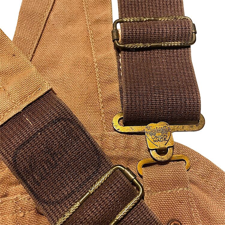60s Carhartt ブラウンダック ビンテージ オーバーオール Brown Duck キャンバス Overall(山ポケ,股リベット,ハートマークボタン,トリプルネームタグ,UFOリベット,レザーダブルニー)