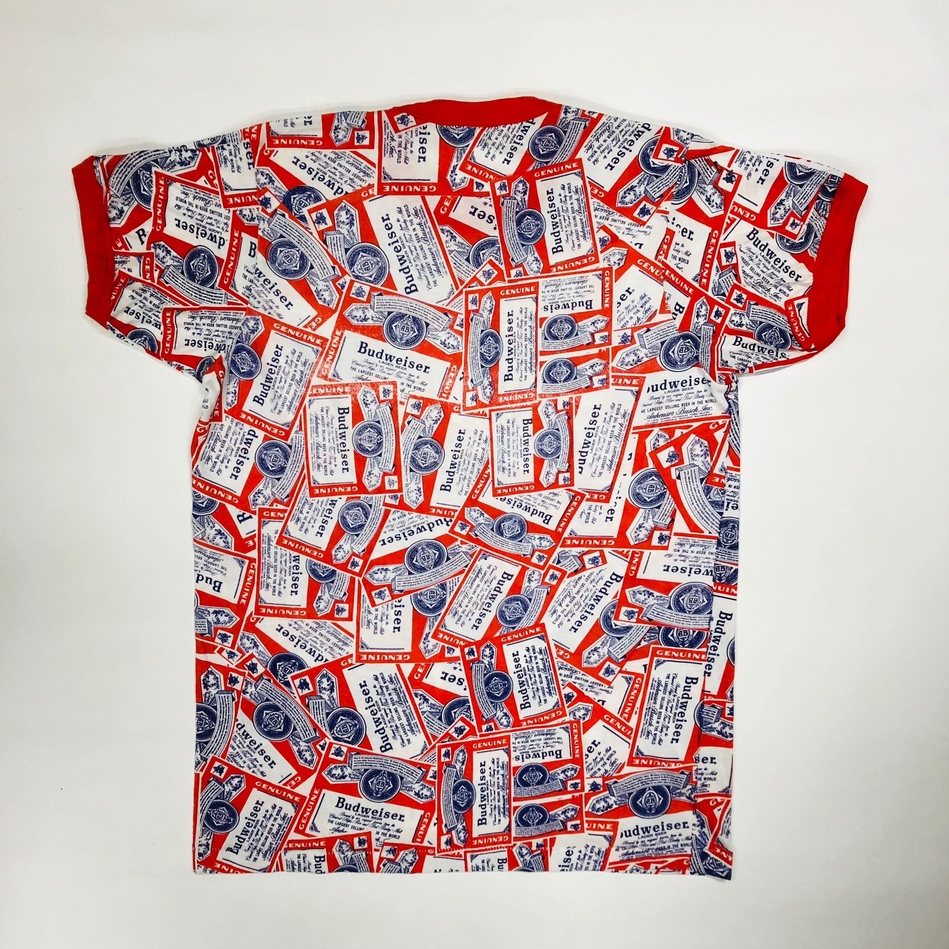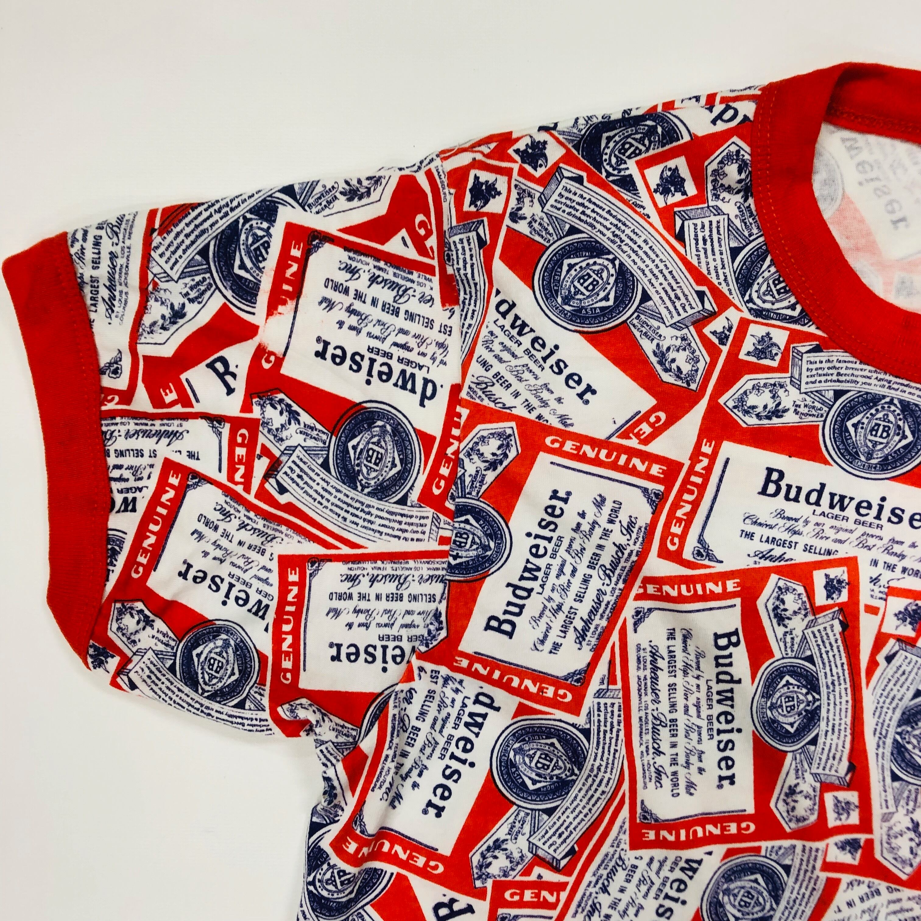 70年代に実在したBUDWEISERの総柄Tシャツの復刻モデル。