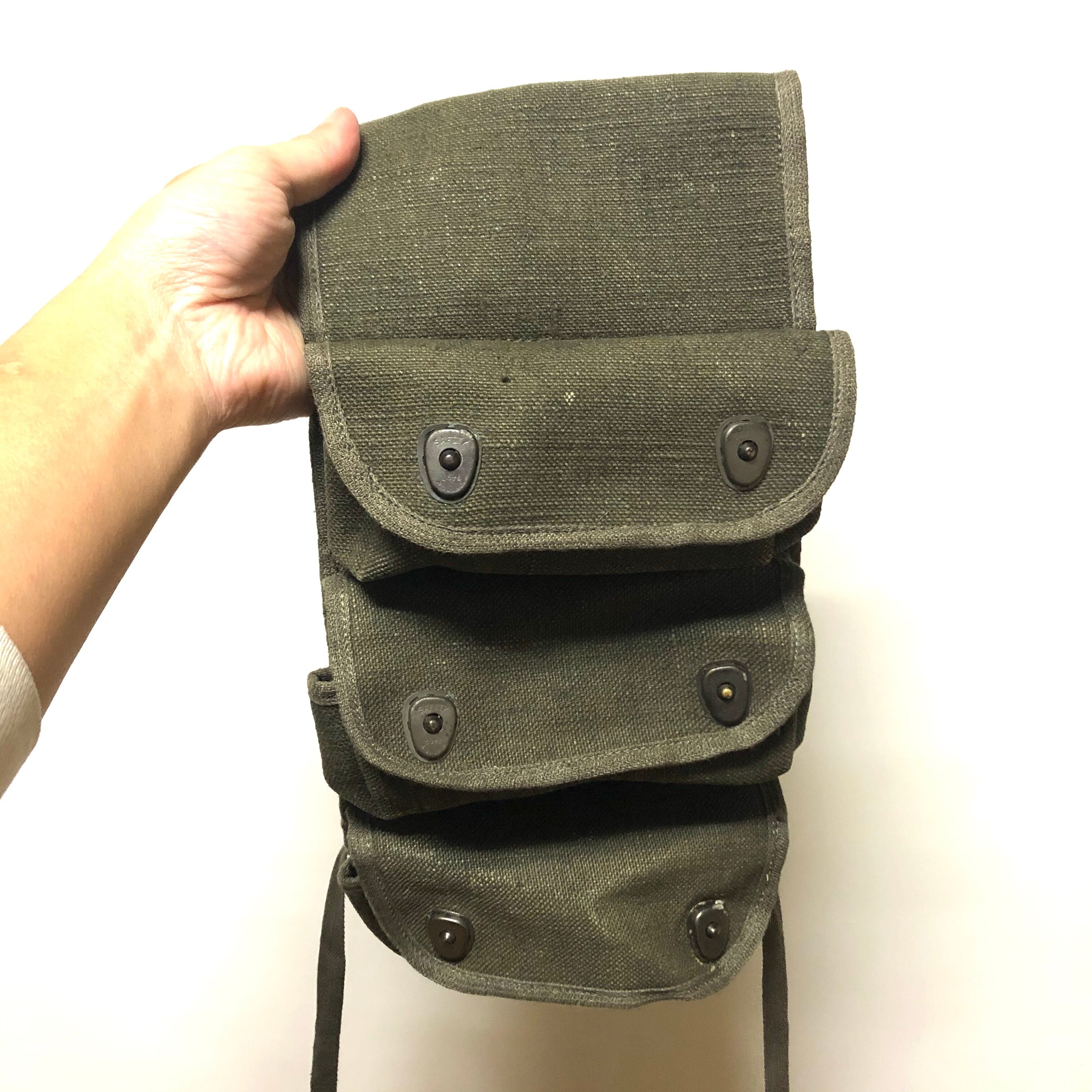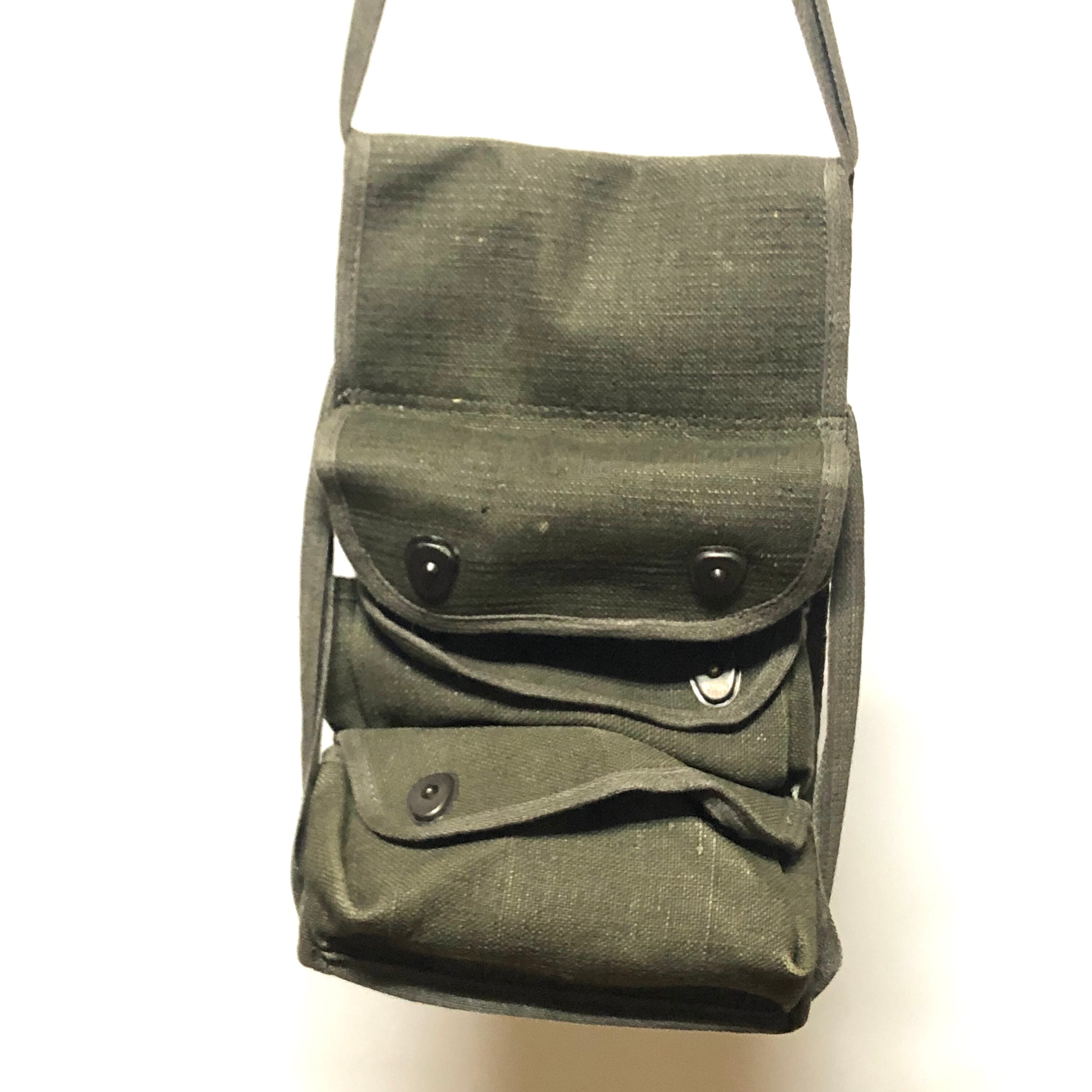 軍放出品 60's Military ミリタリー フランス軍 ビンテージ コットン&麻生地 三連レッグポーチ