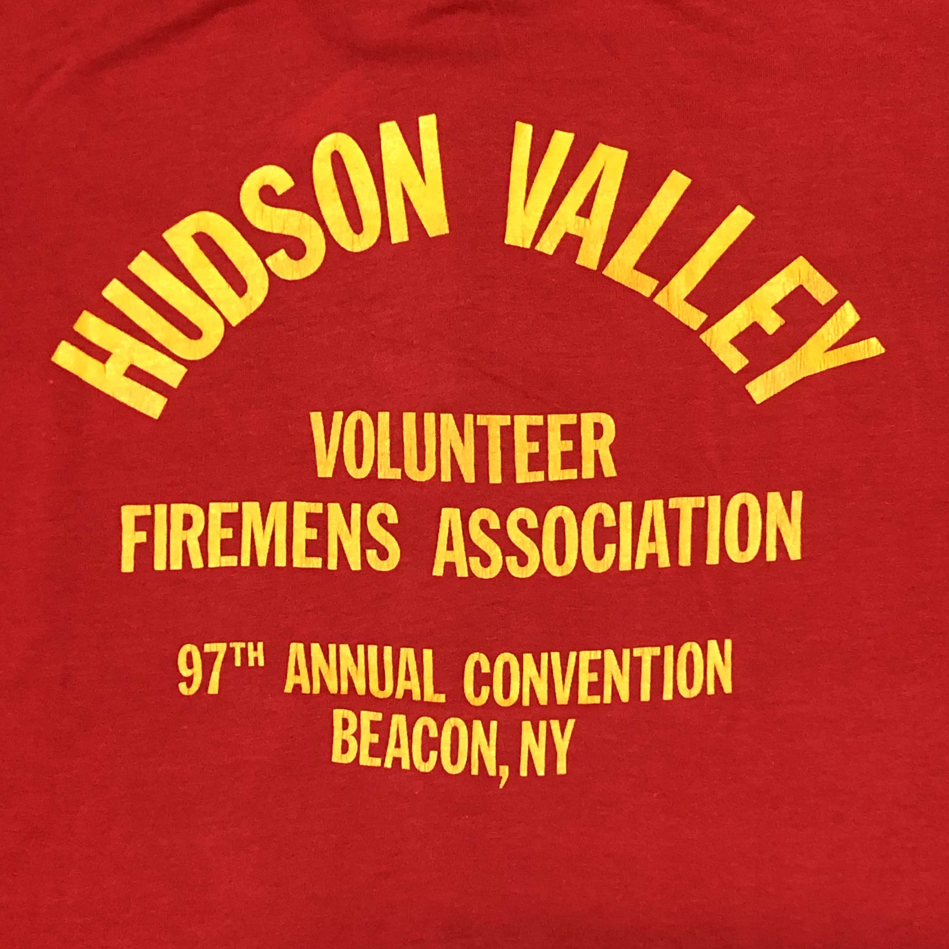80's FIREMANS ASSOCIATION 両面プリント ビンテージ Tシャツ(赤,M)
