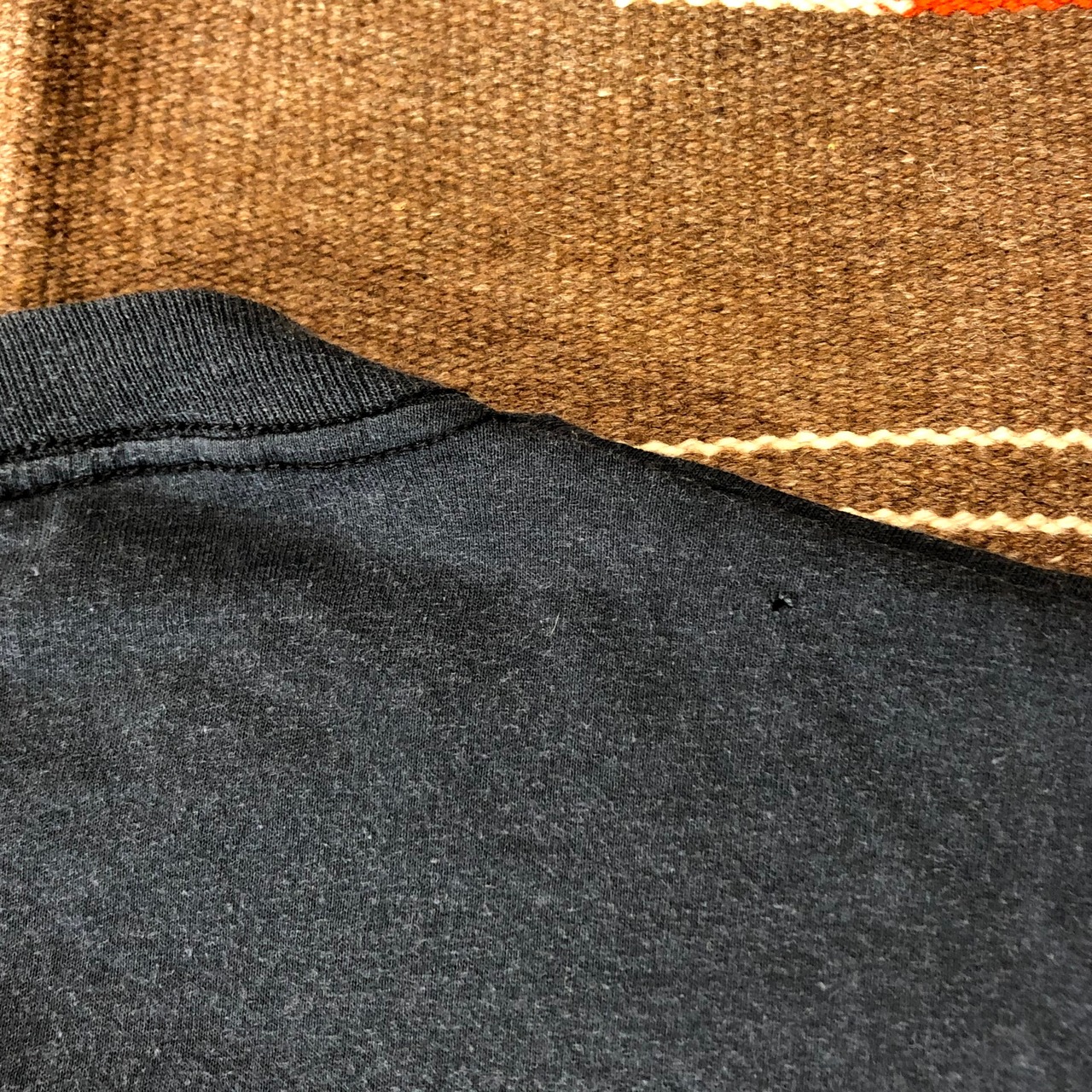 CONDITION:フロントプリントした腹部に小穴。間に軽い汚れあり。背面右ショルダー部分に小穴。生地はまだしっかりした状態です。
