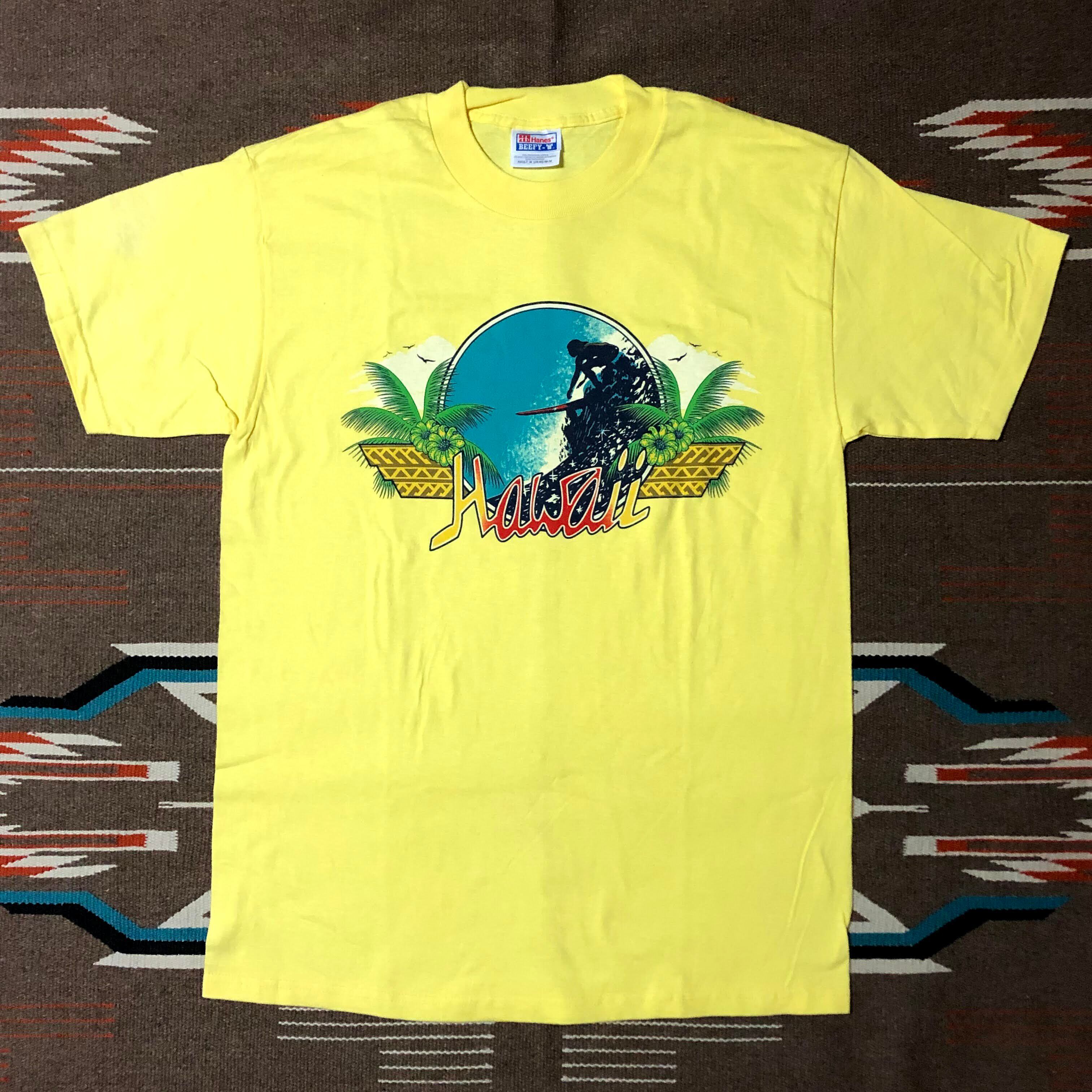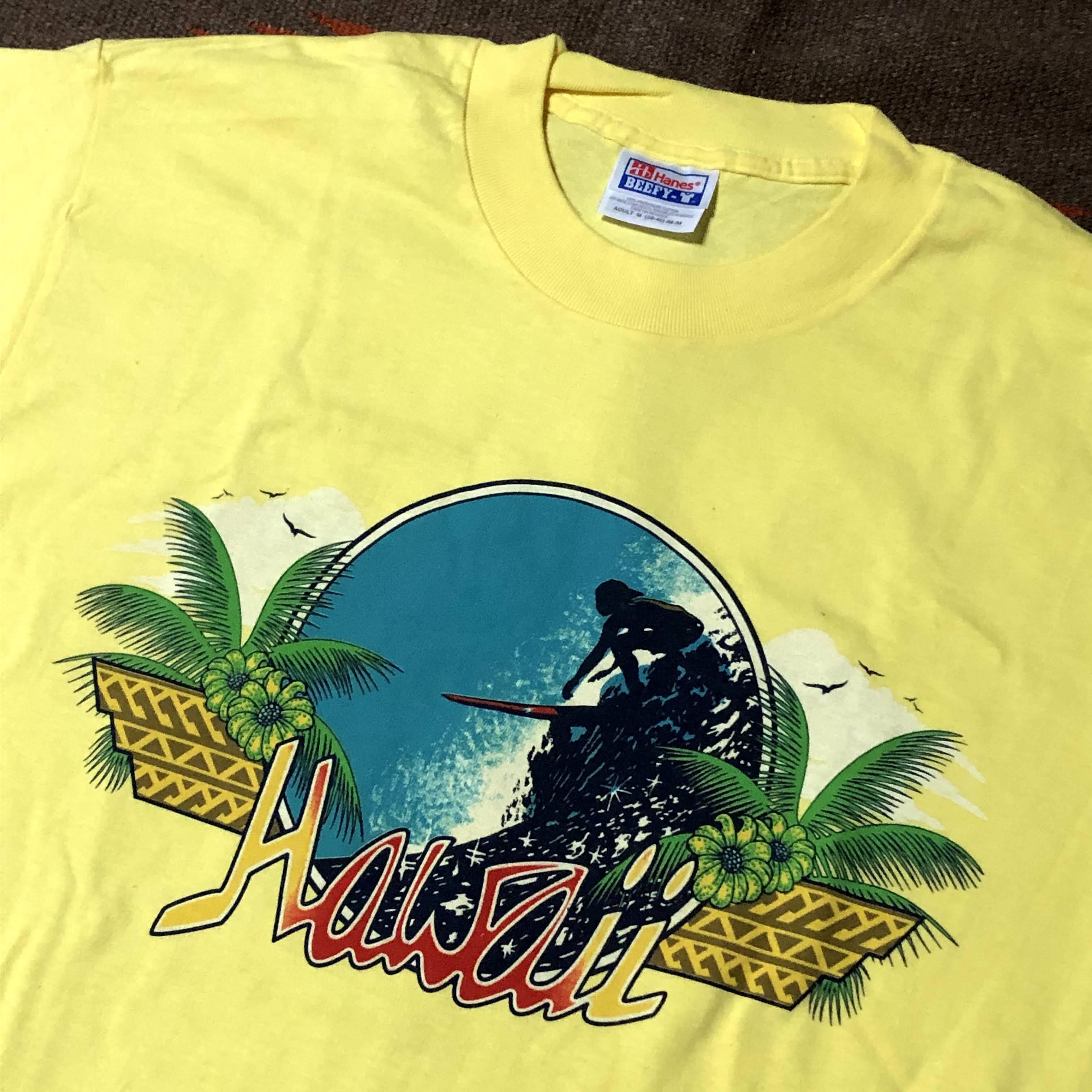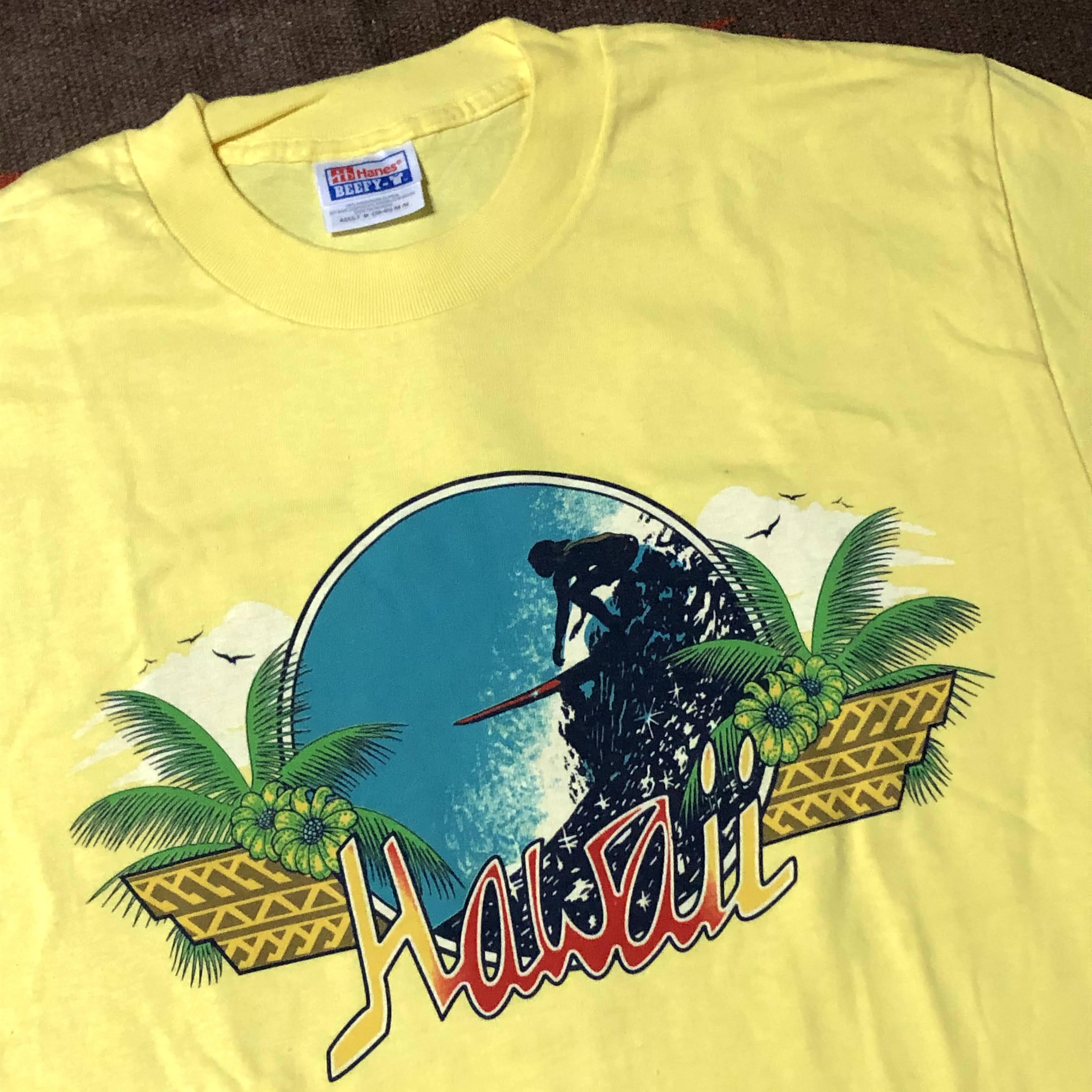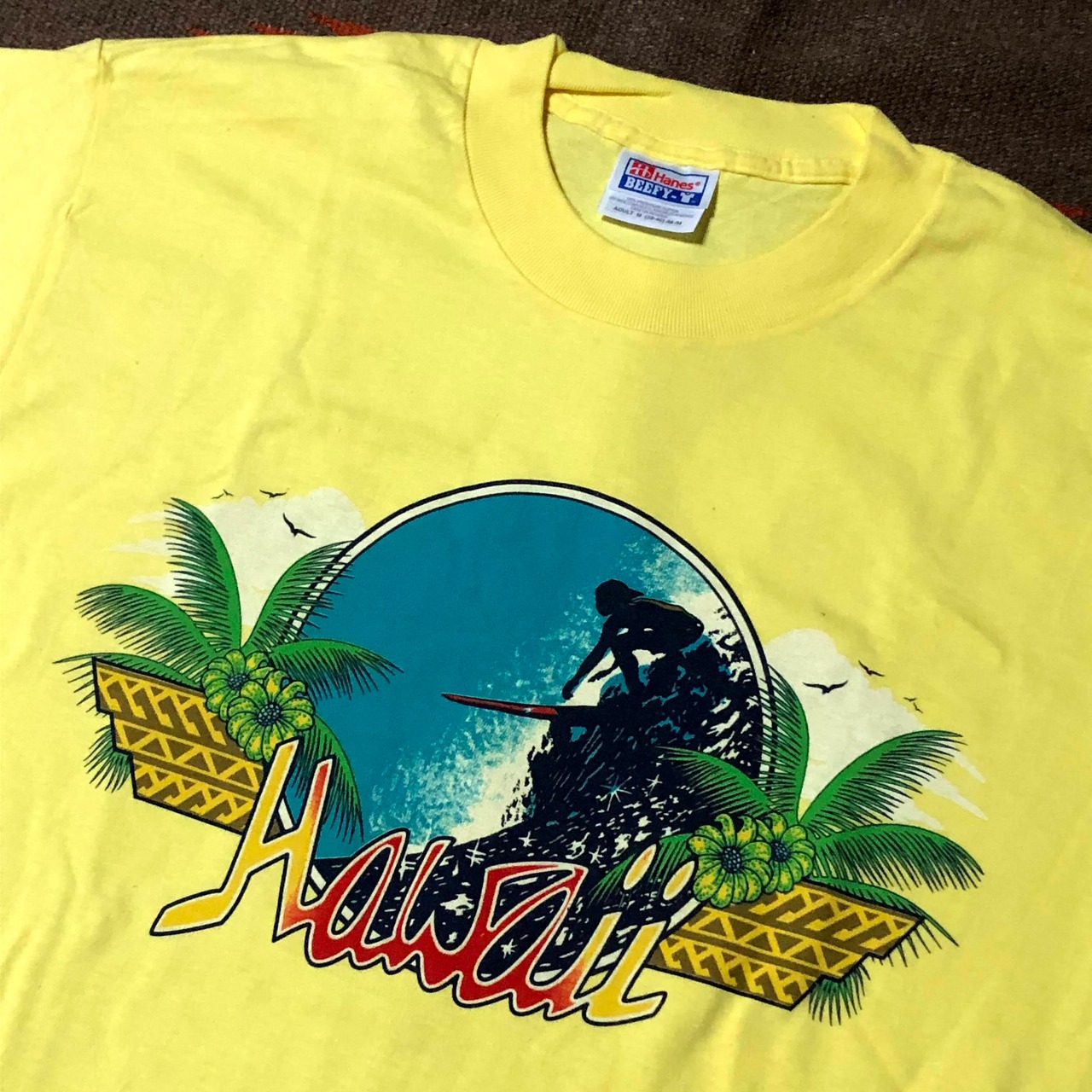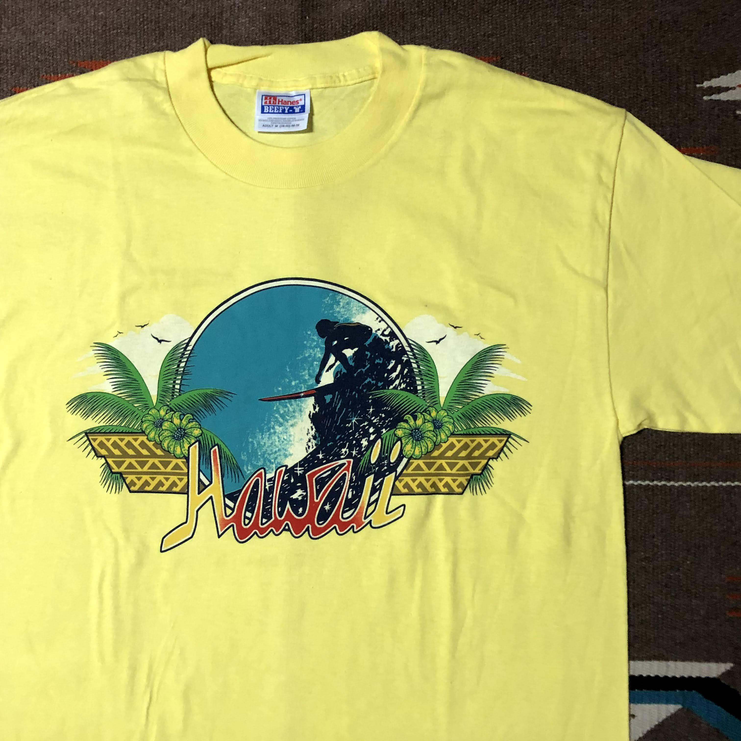 90's Hanes HAWAII SURF ハワイ サーフ サーフィン ビンテージ Tシャツ デッドストック(イエロー,M)
