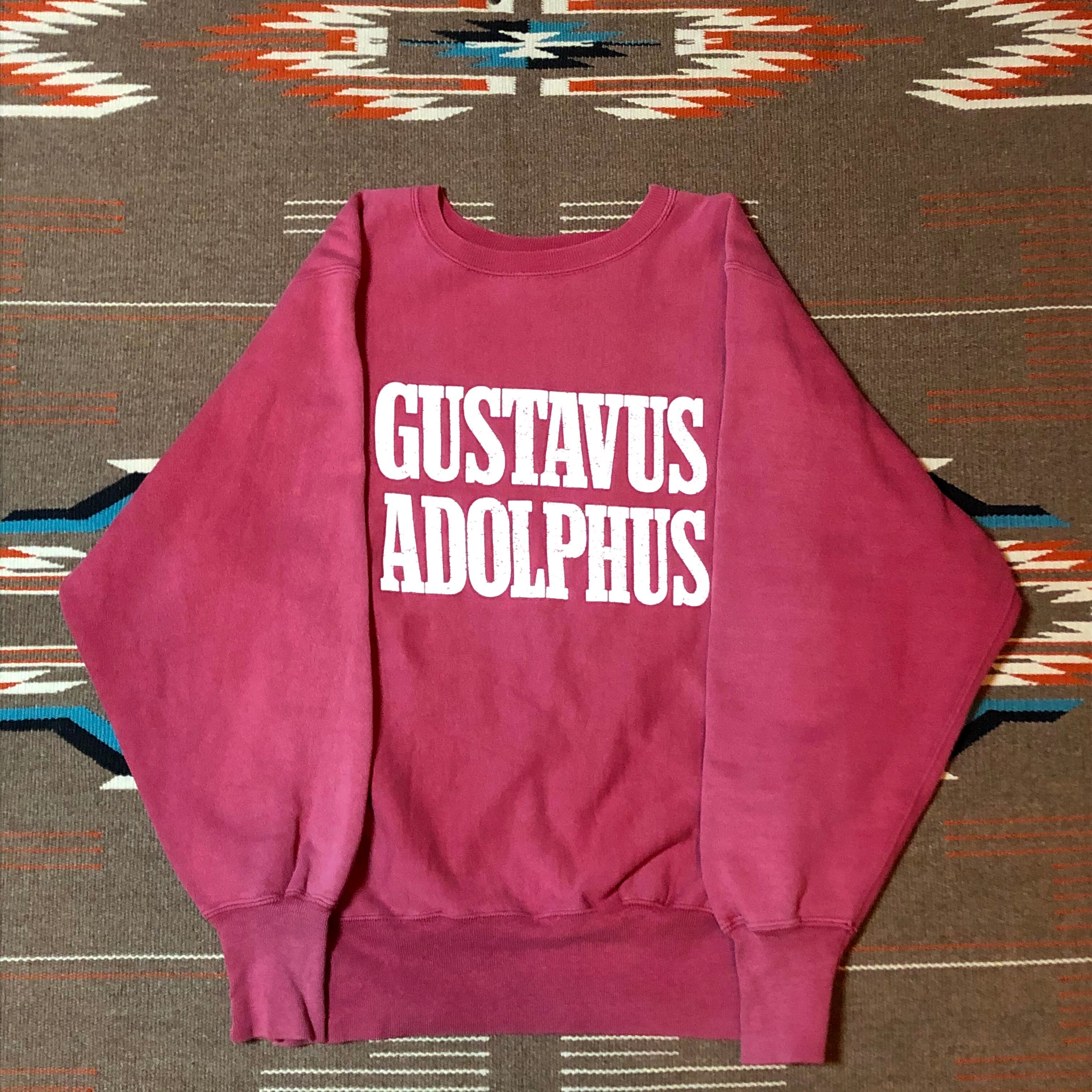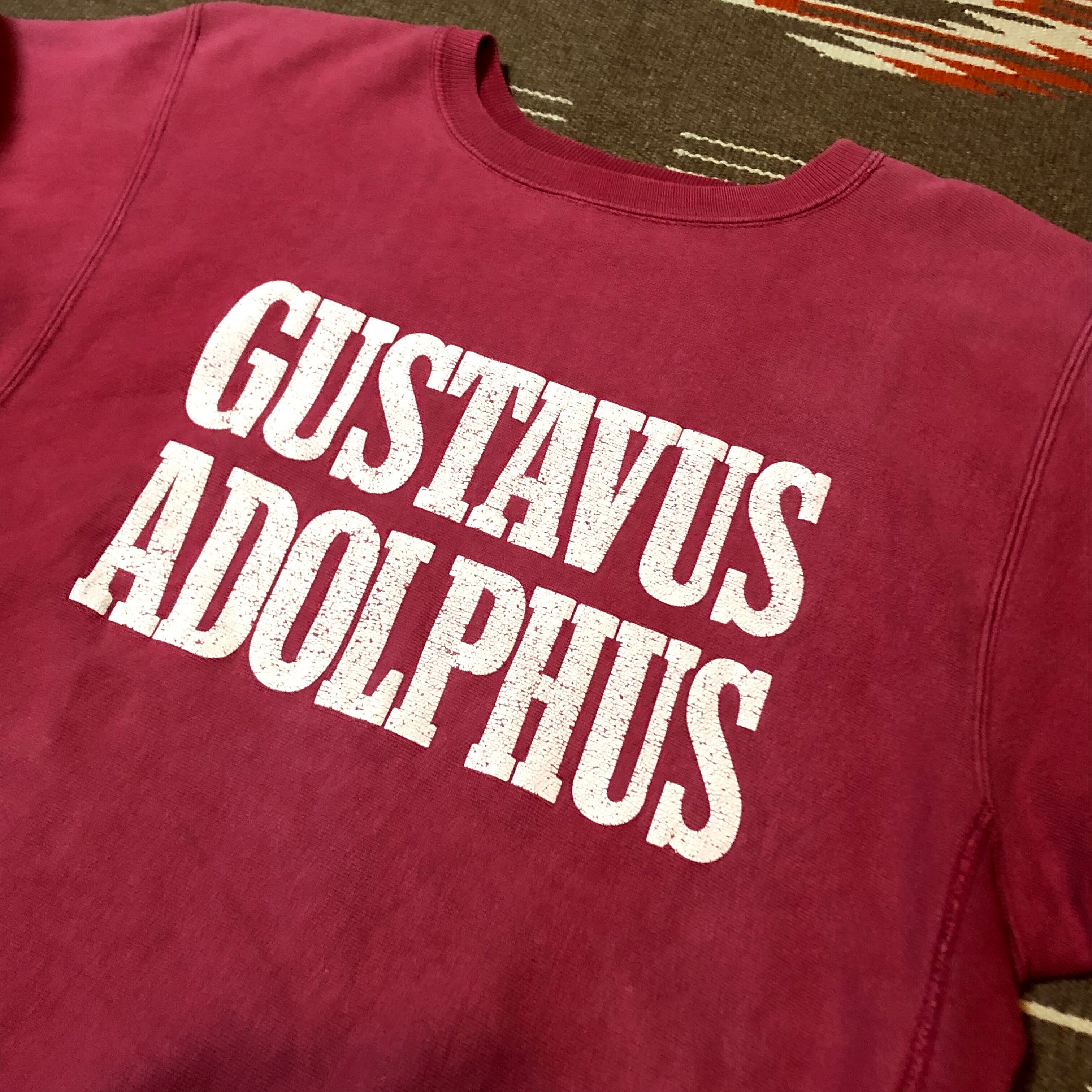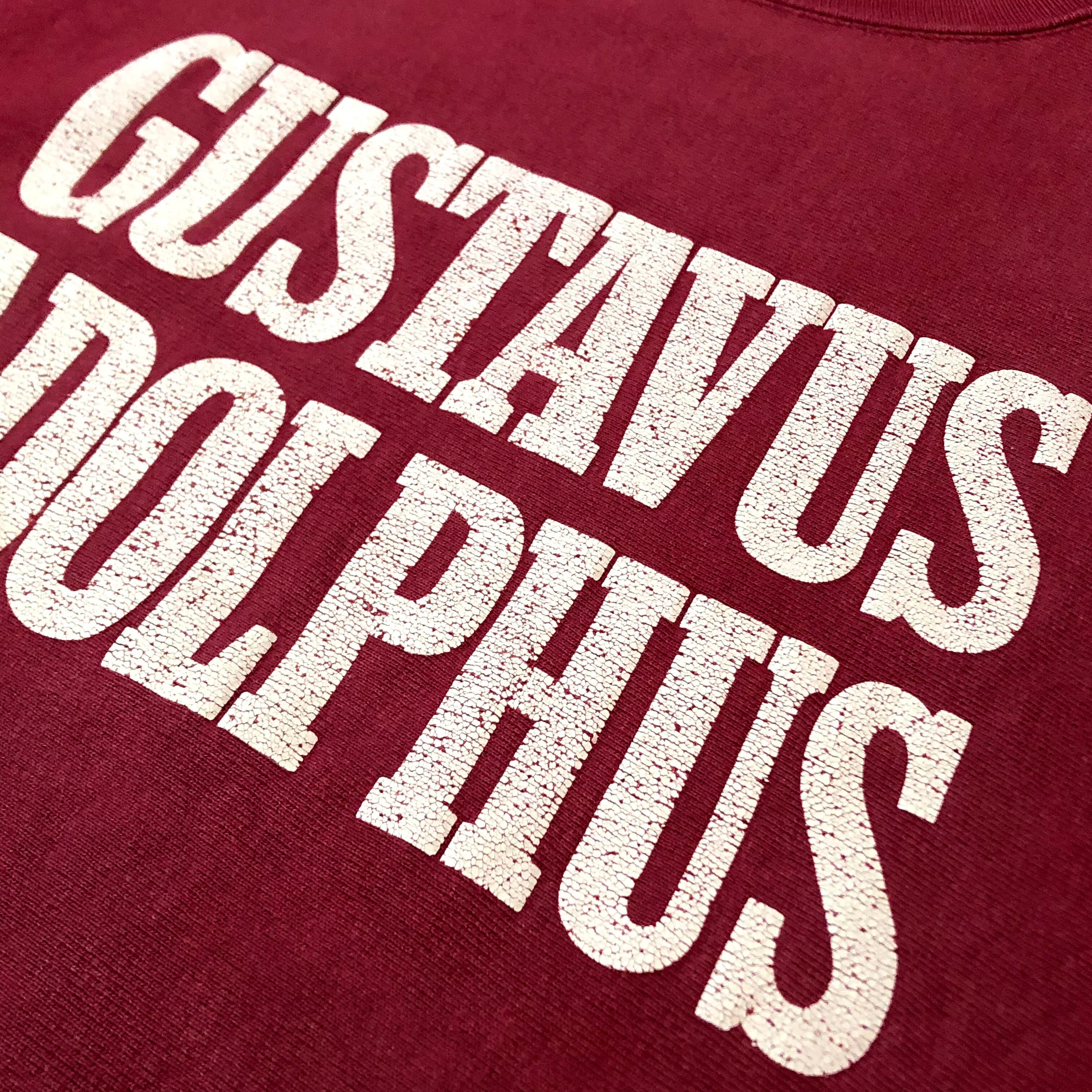 'GUSTAVUS ADOLPHUS' ミネソタ州のグスタフアドルフスカレッジプリントの二段。ひび割れプリント。迫力のあるブロックロゴが魅力の'MADE IN USA''''刺繍タグ'