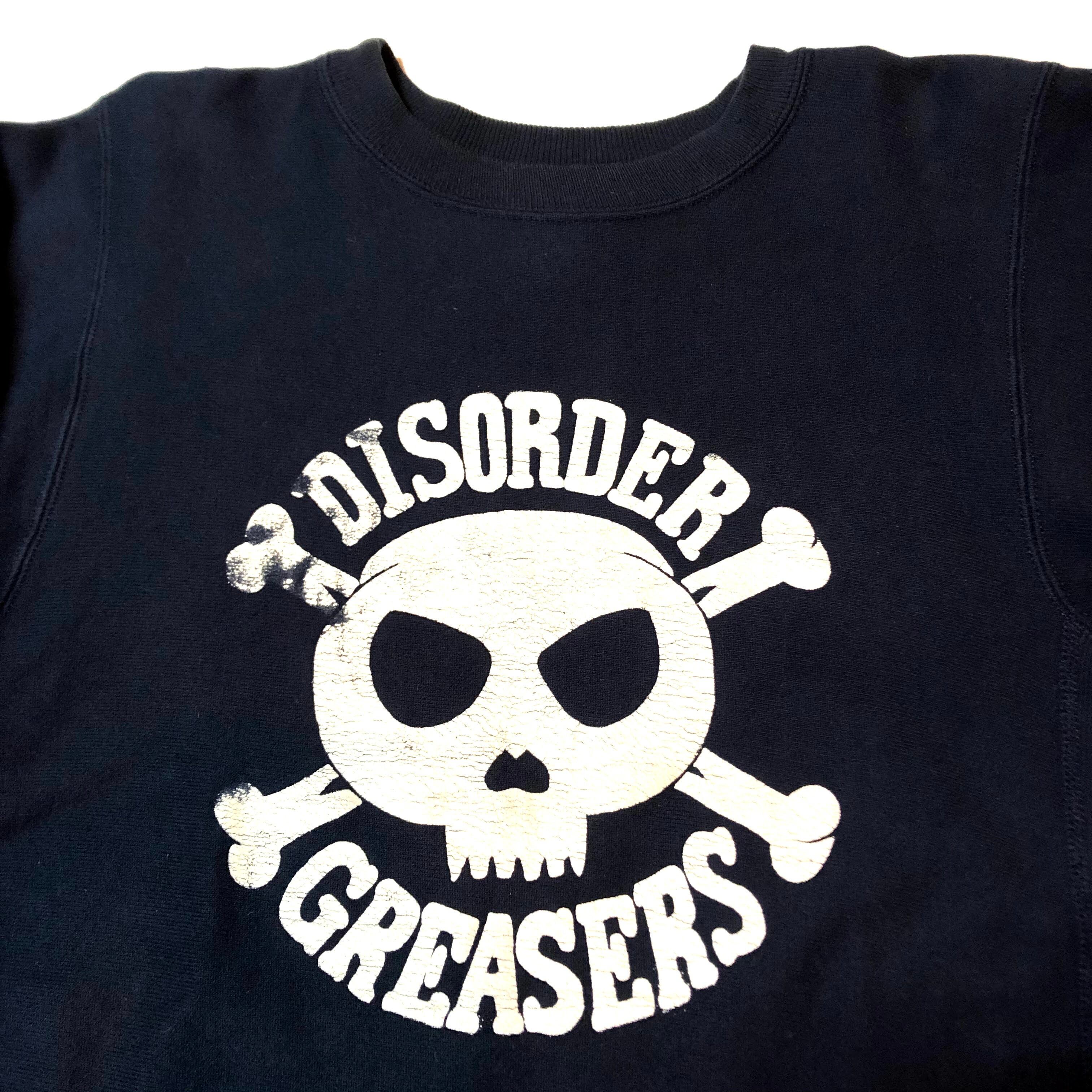 80-90's チャンピオン リバースウィーブ スウェット スカルプリント ビンテージ Champion REVERSE WEAVE SWEAT 刺繍タグ(紺,S)スペシャルレアプリント disorder greasers ロカビリー テディボーイズ 珍ピオン