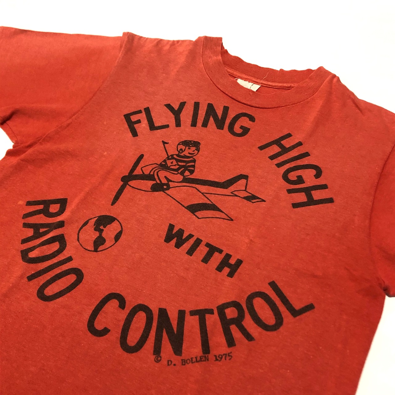 70's ビンテージ ラジコン 飛行機柄 Tシャツ スペシャルプリント FLYING HIGH RADIO CONTROL ©1975 プラモデル