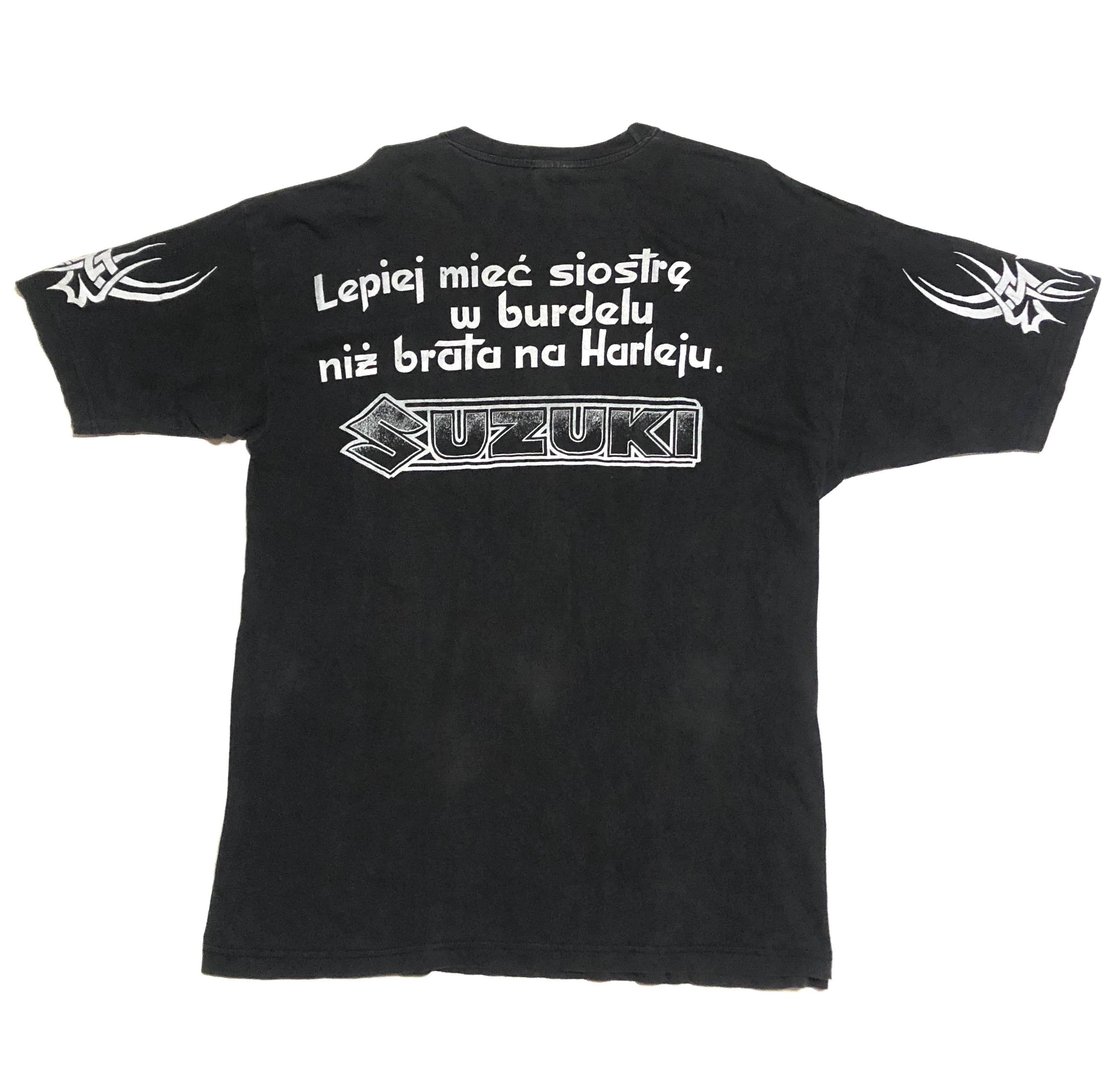 ヴィンテージ SUZUKI スズキ両面プリント Tシャツ バイク AMERICAN 肩ショルダープリント(黒,XL)