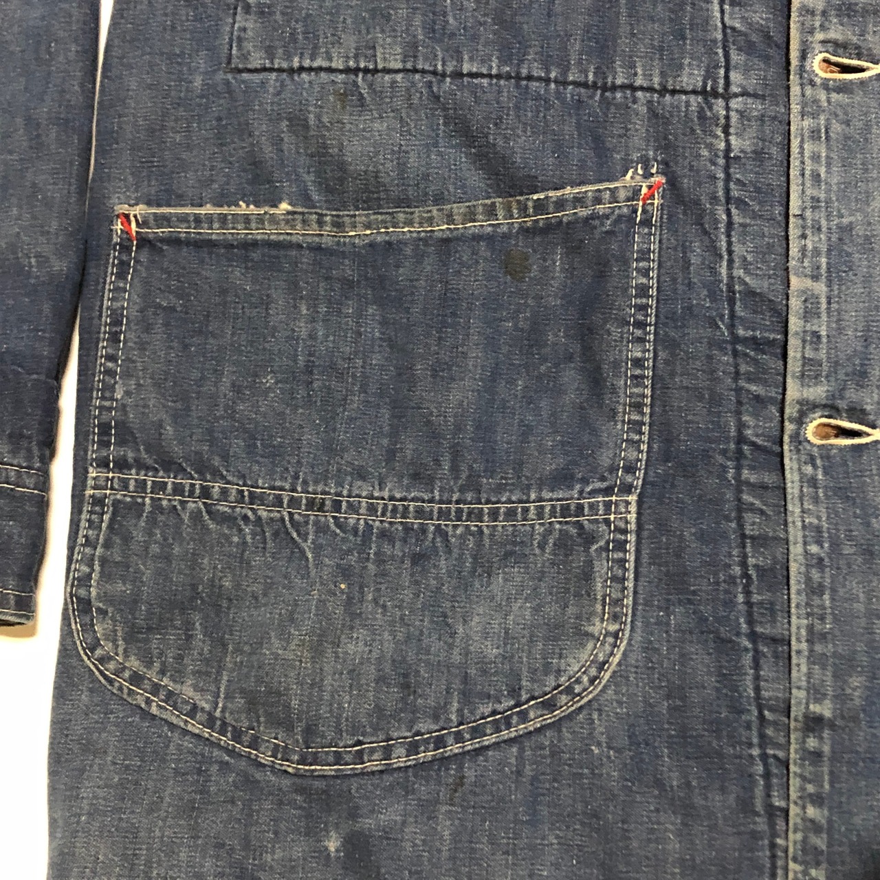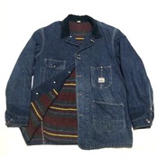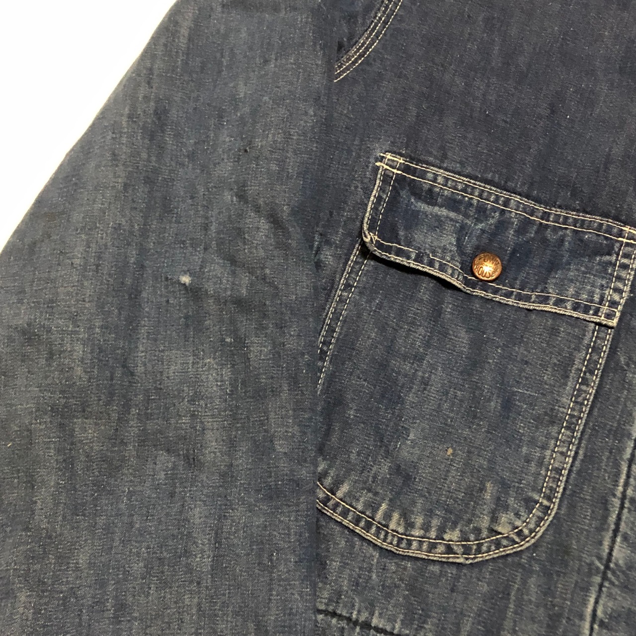 40s 50s ヴィンテージ POWR HOUSE パワーハウス デニムカバーオール ブランケット付き 煙突タグ ワーク 襟ネイビーカラーコーデュロイ(44程度)