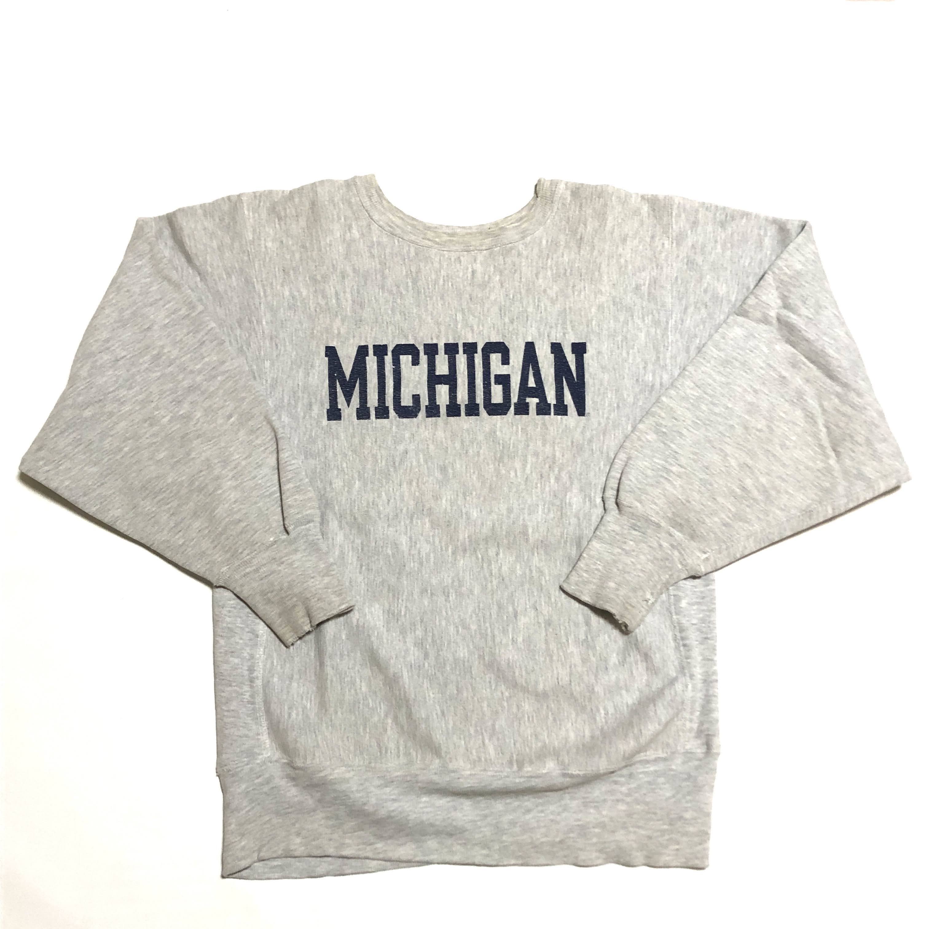 90s チャンピオン リバースウィーブ スウェット ビッグロゴ ヴィンテージ Champion REVERSE WEAVE SWEAT USA製 刺繍タグ(グレー,M)MICHIGANミシガン大学