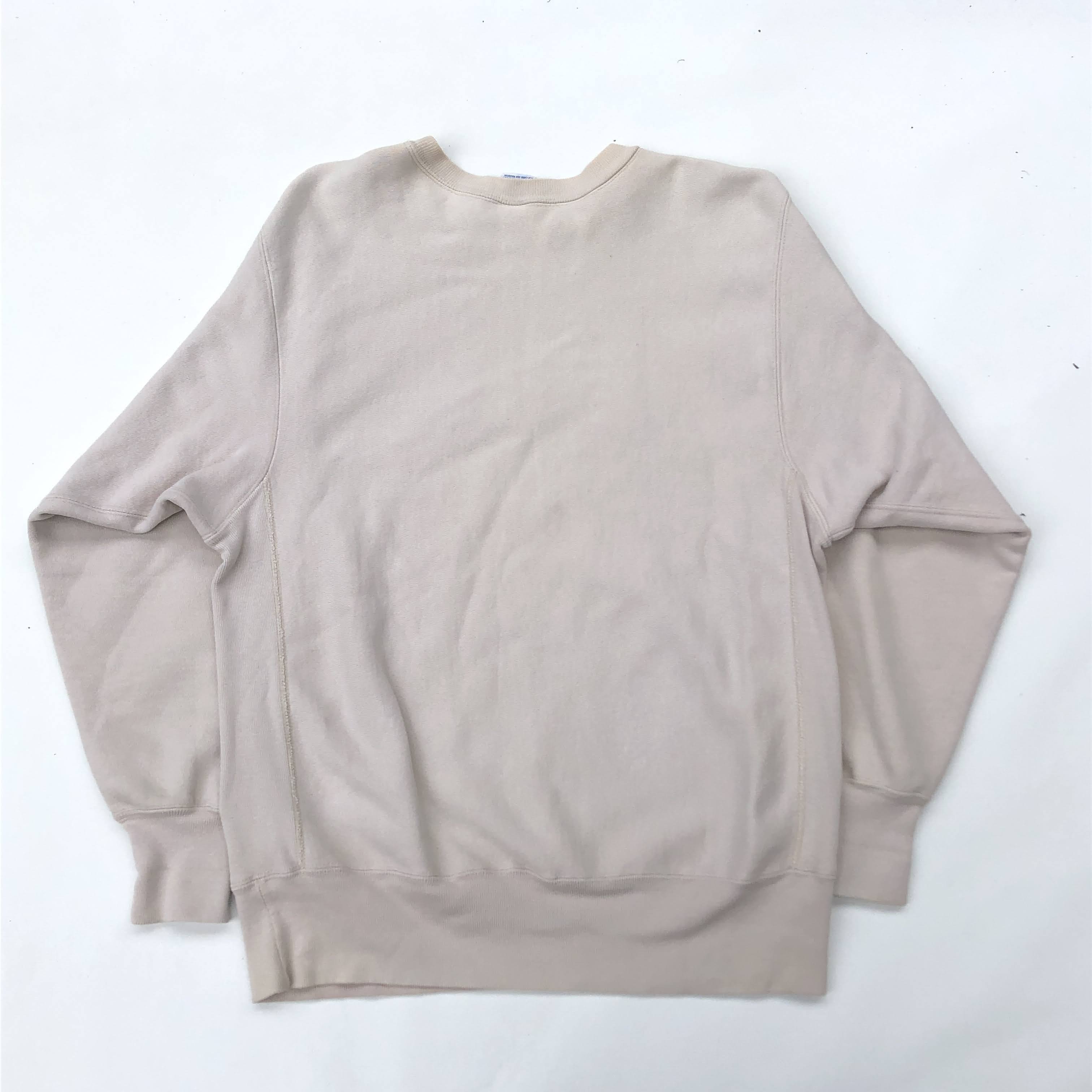 超絶レアカラー 90s チャンピオン リバースウィーブ スウェット ビッグロゴ ヴィンテージ Champion REVERSE WEAVE SWEAT USA製 刺繍タグ(ベージュ,クリーム系,XL)ILLINOISイリノイ大学