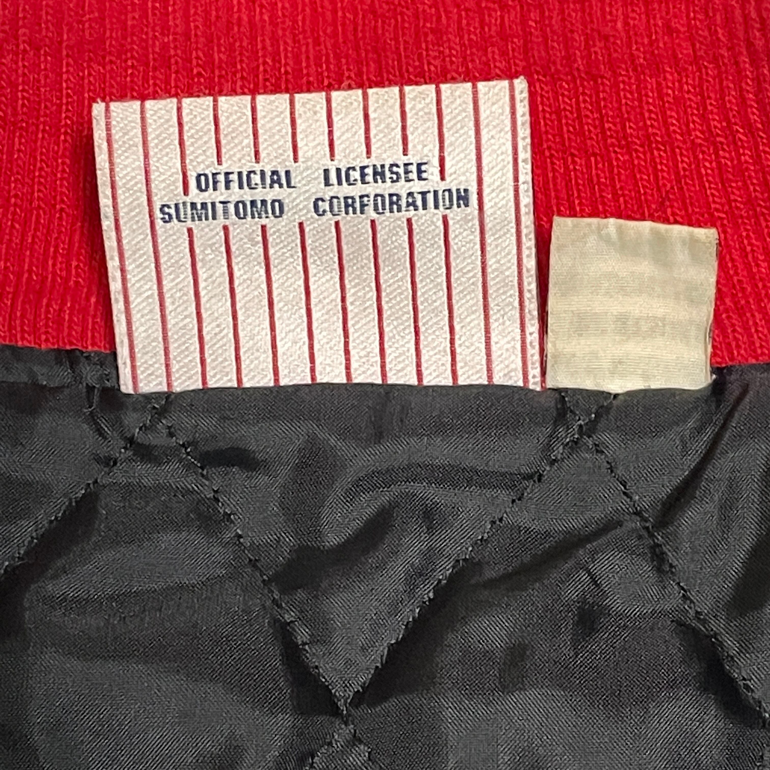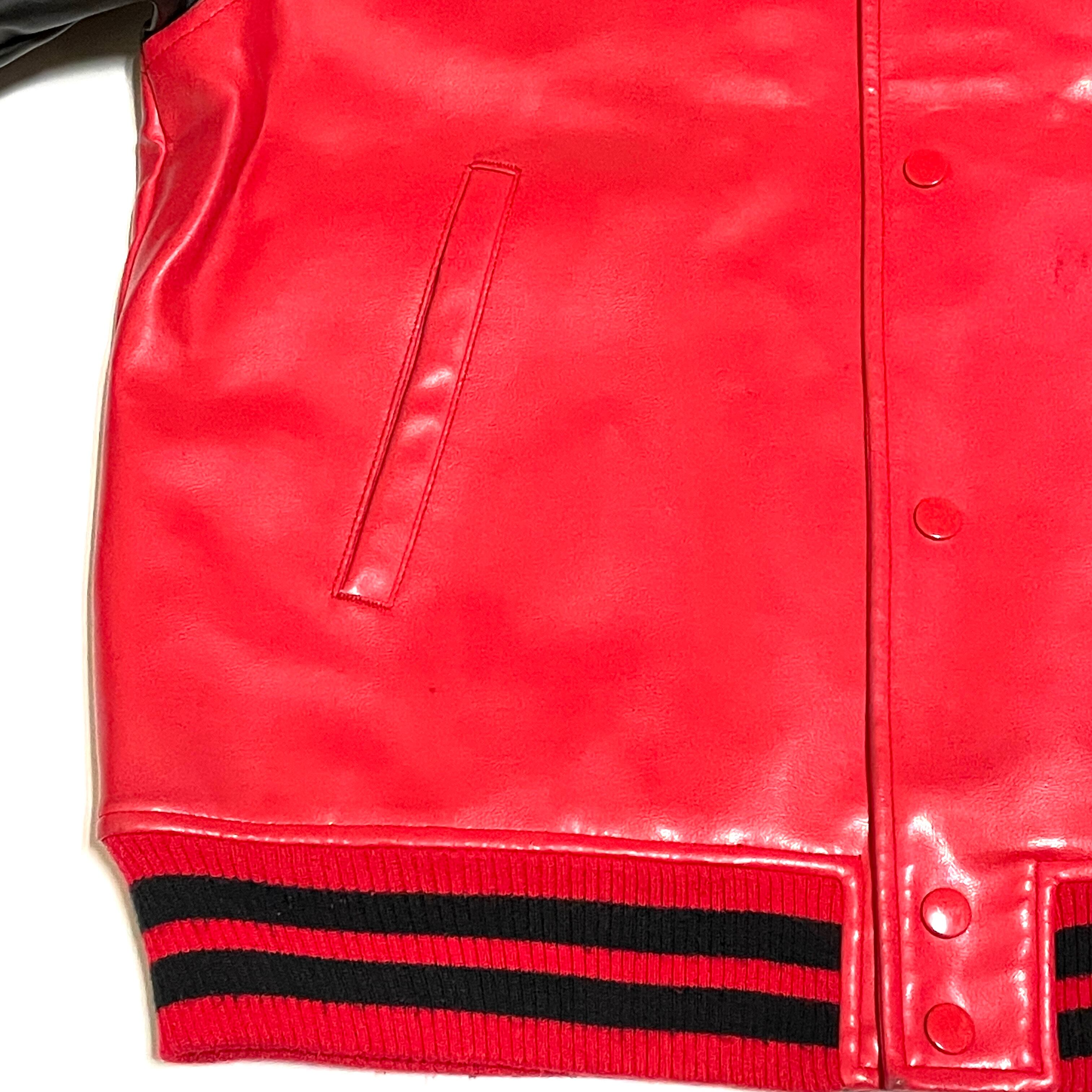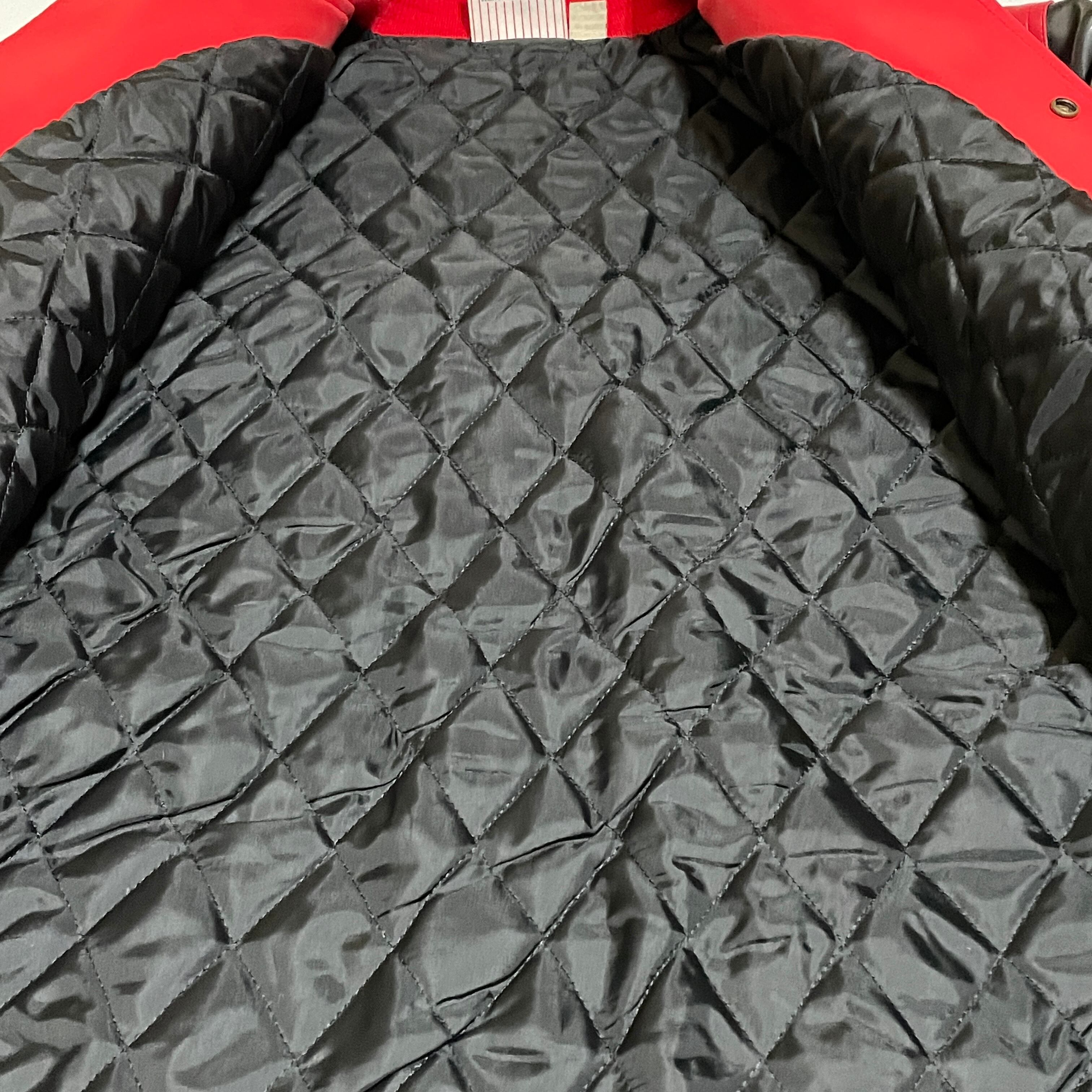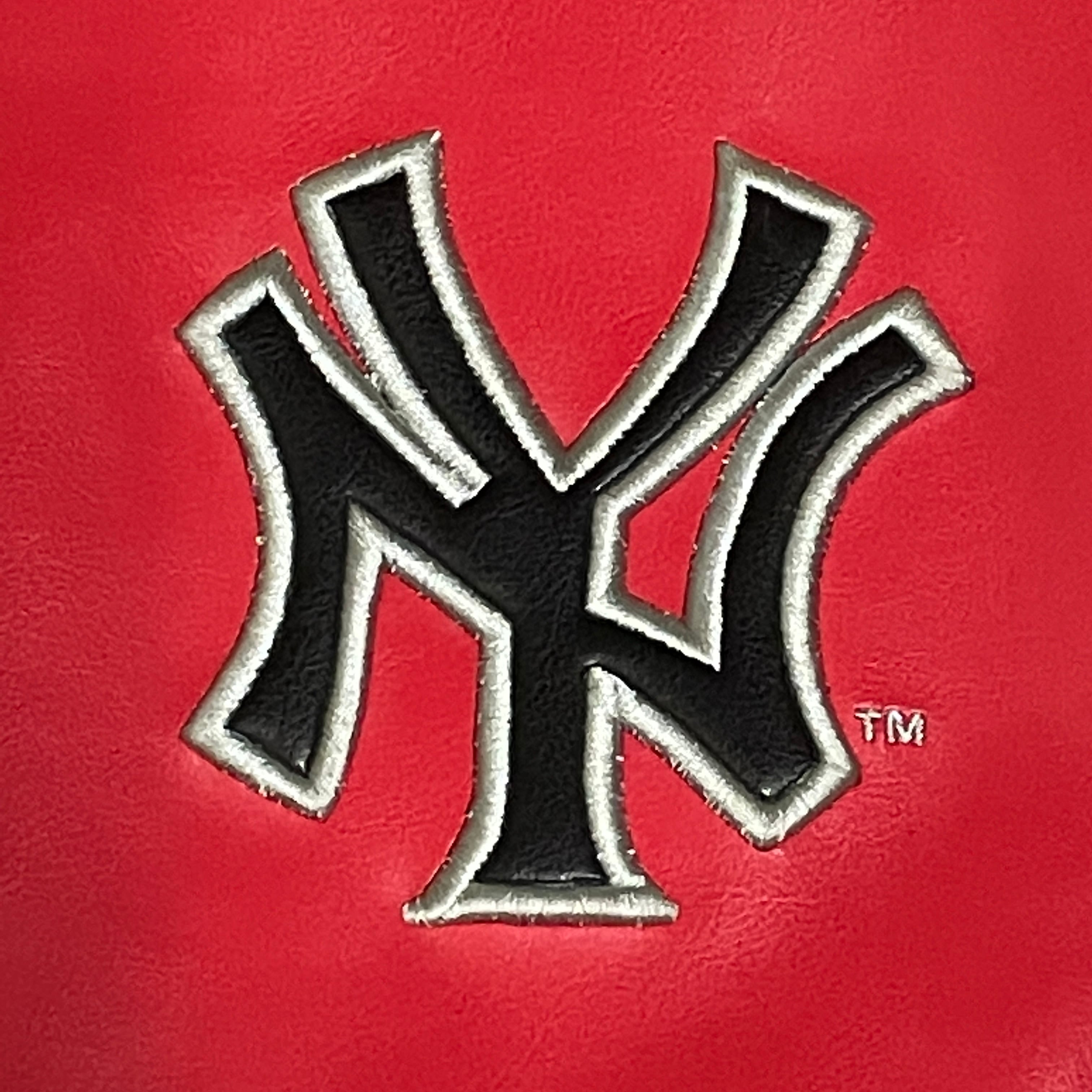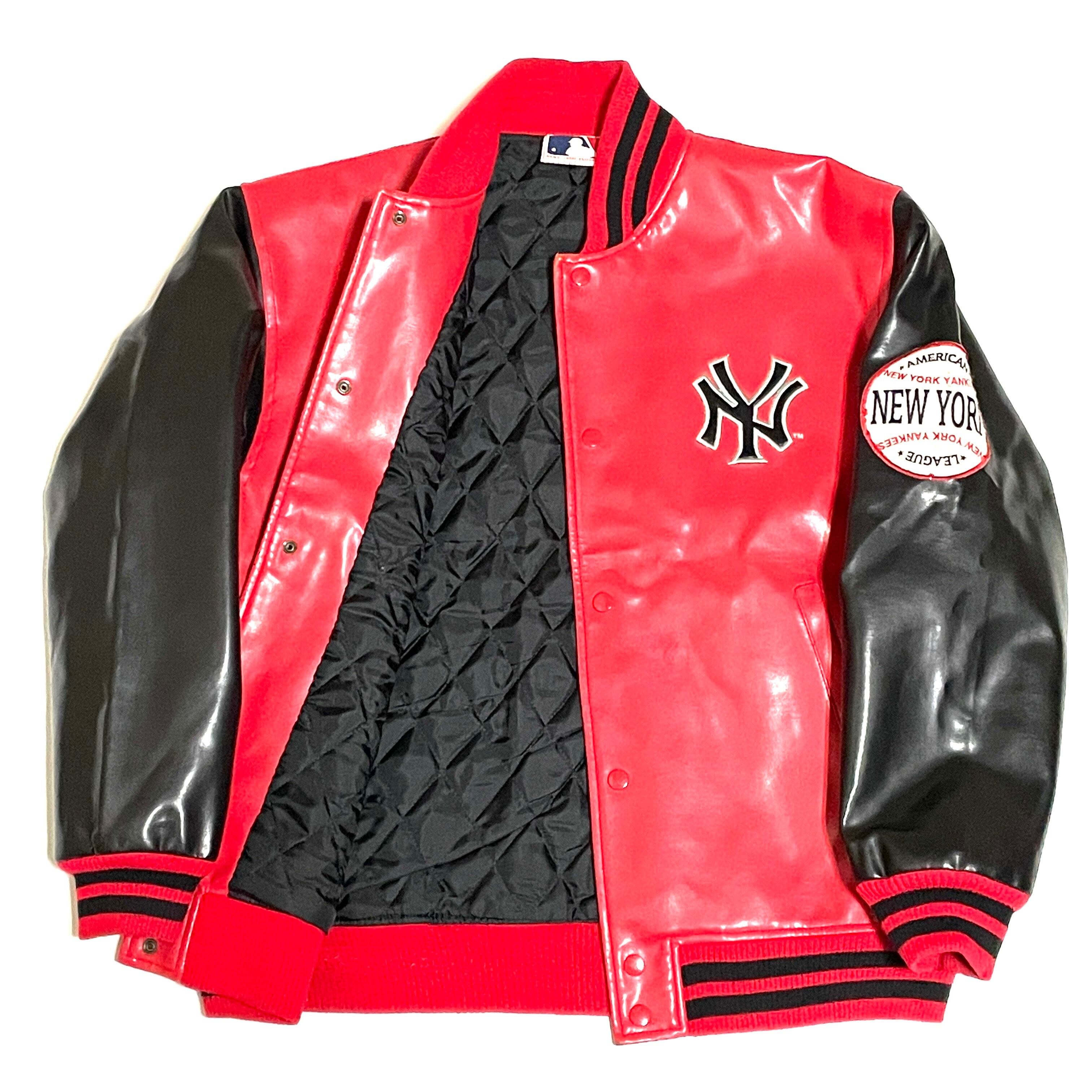 ヴィンテージ ニューヨークヤンキース スタジャン 激レアフェイクレザージャケット 中綿入り MLBオフィシャル NEW YORK YANKEES(レッド/ブラック,Lサイズ)