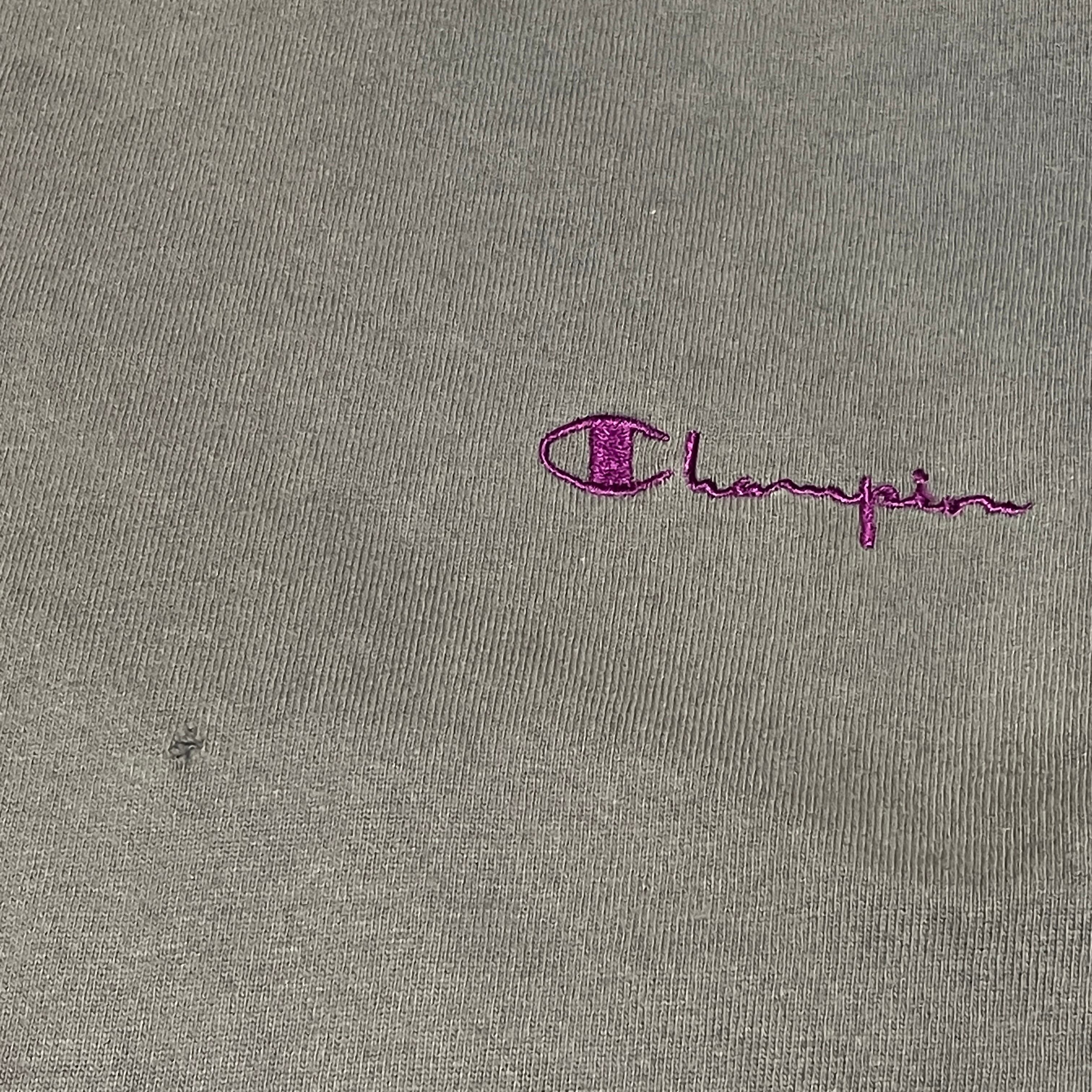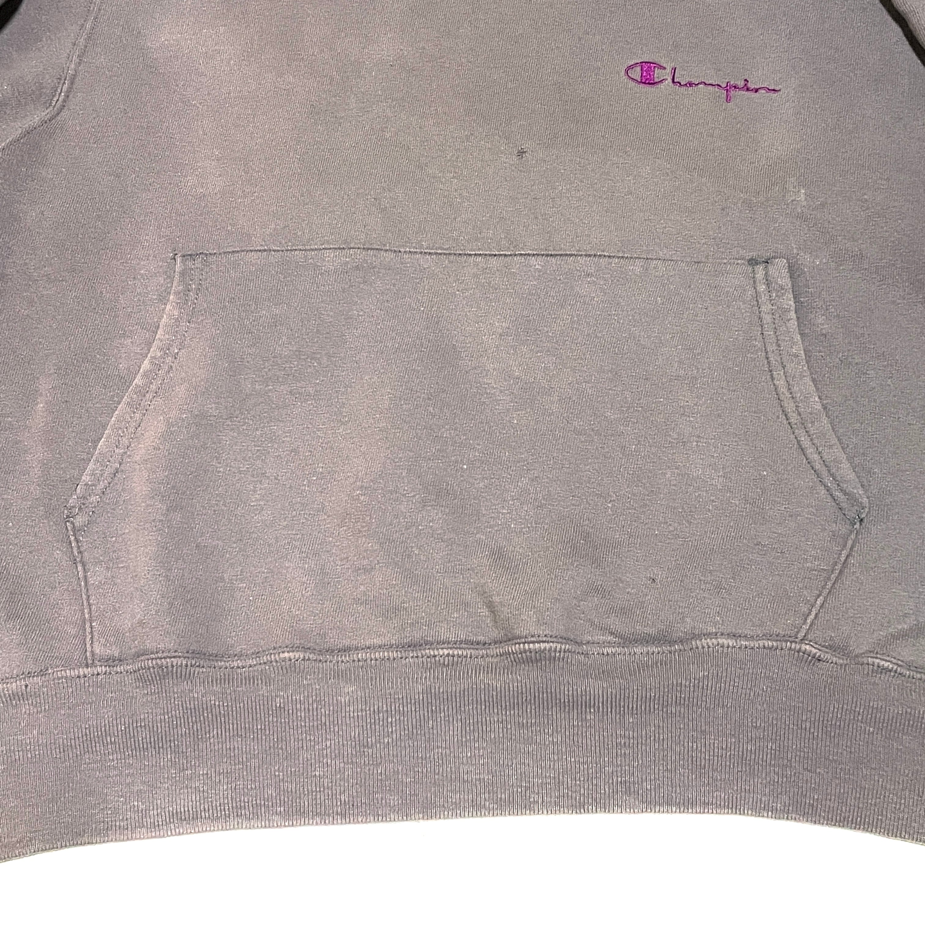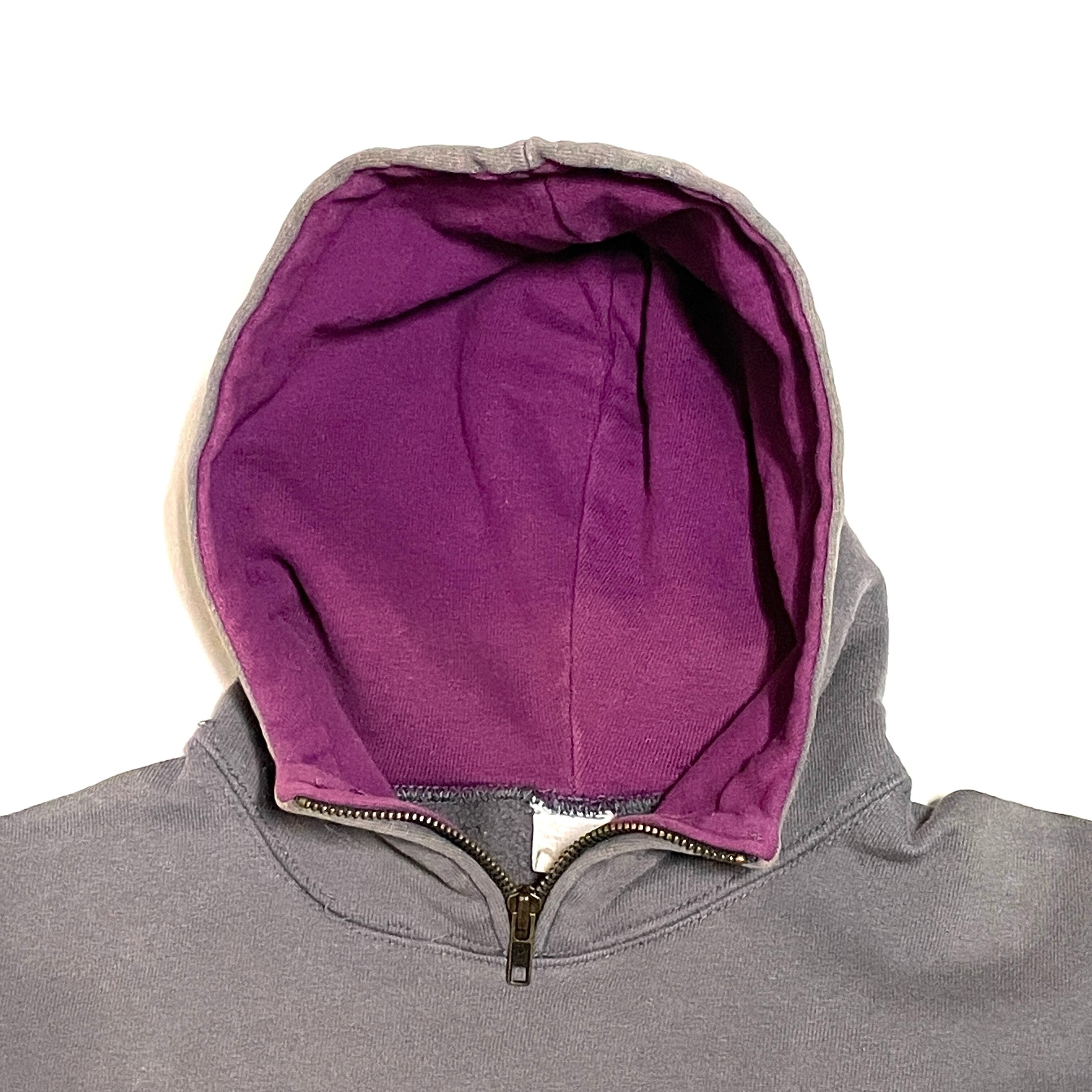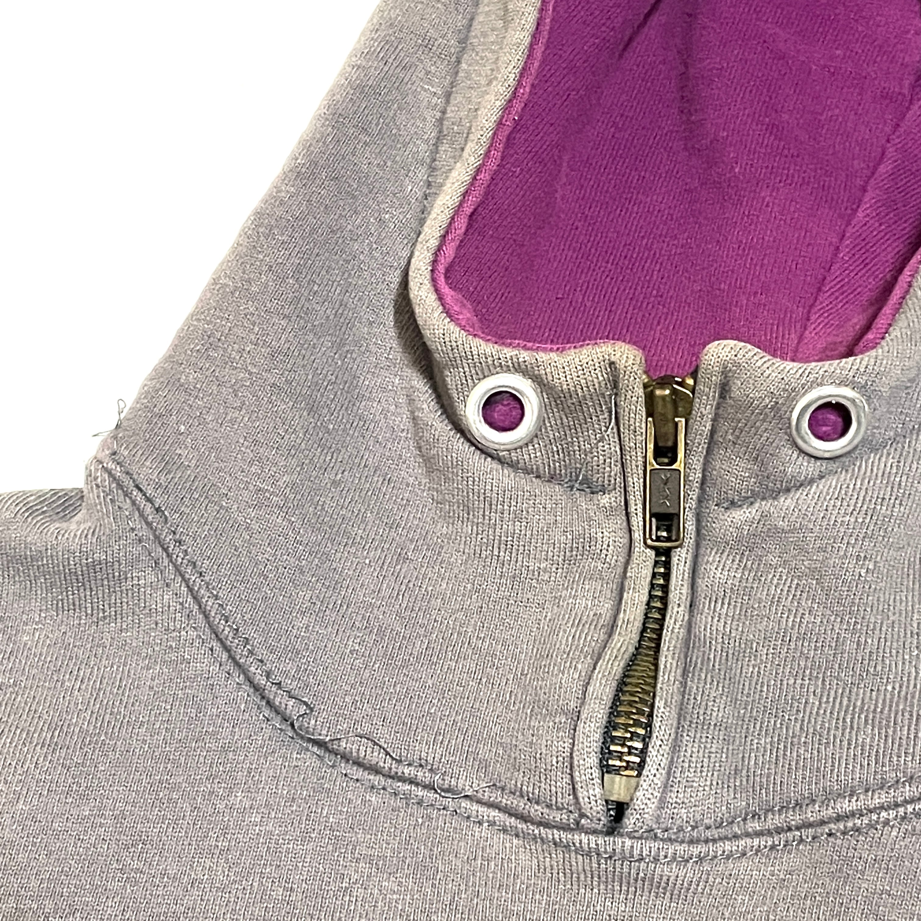 90s チャンピオン リバースウィーブ スウェットパーカー 激レア USA製 刺繍青タグ 珍ピオン ハーフジップパーカースタンドカラー 立ち襟 ストームジップ(グレー ×パープルツートンカラー,about L)