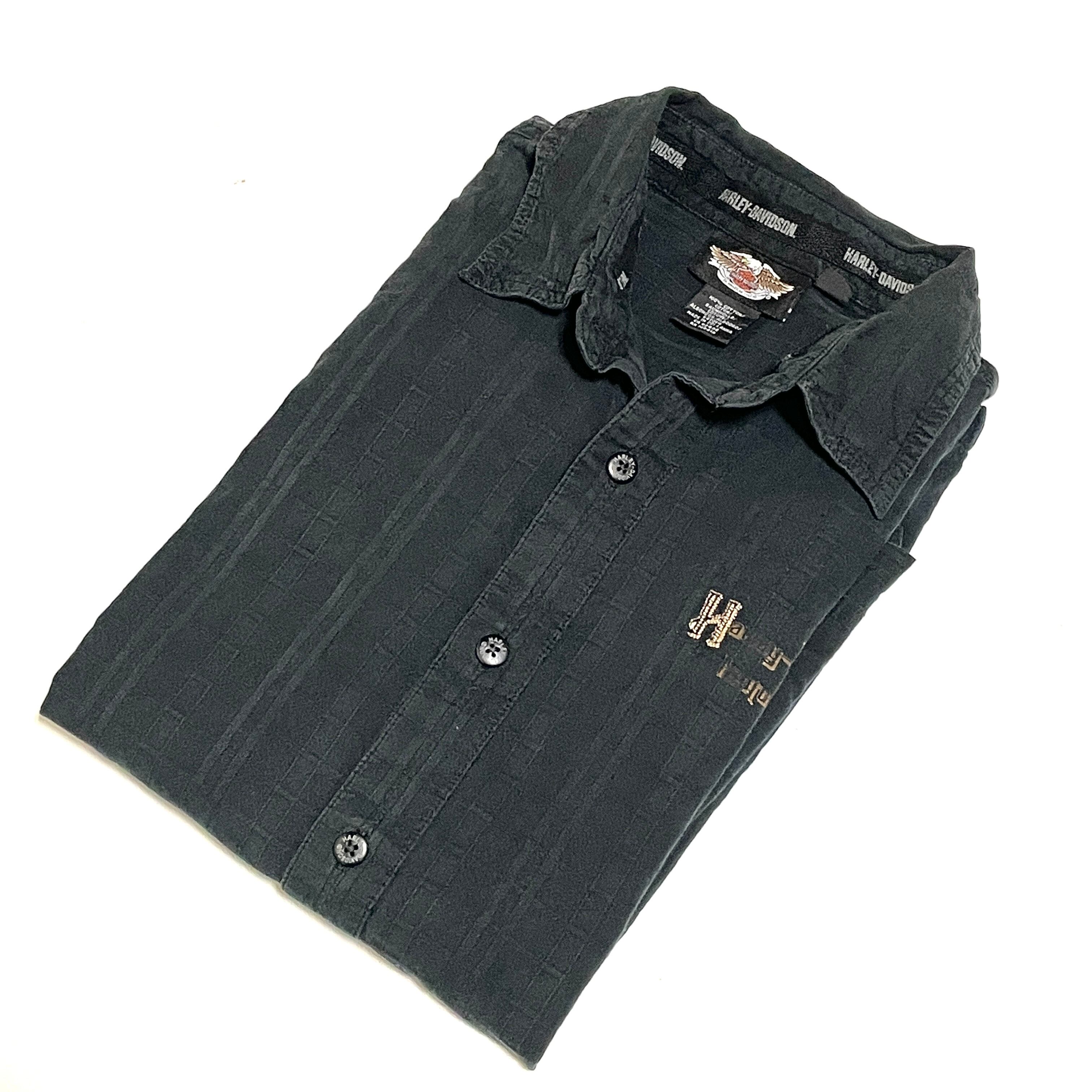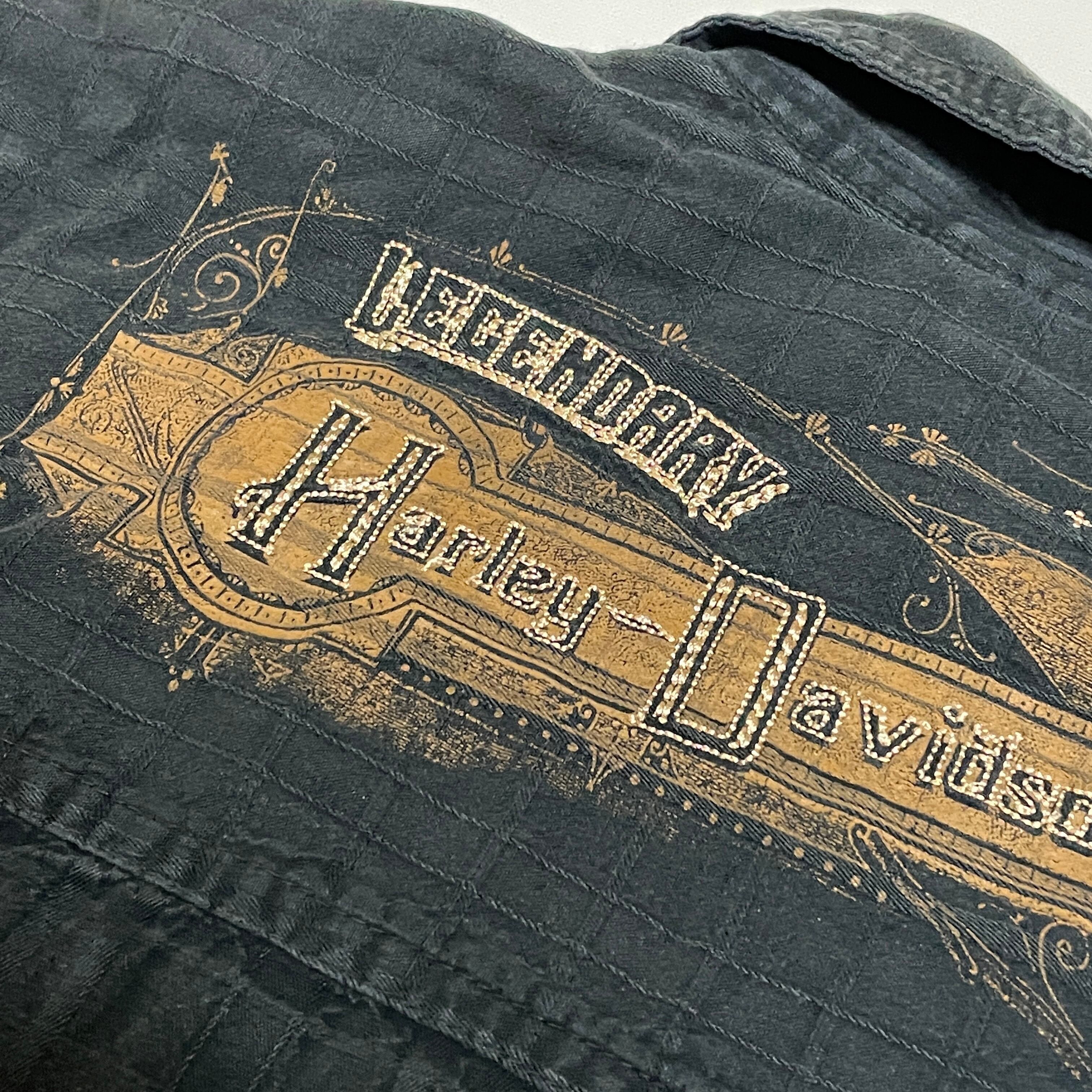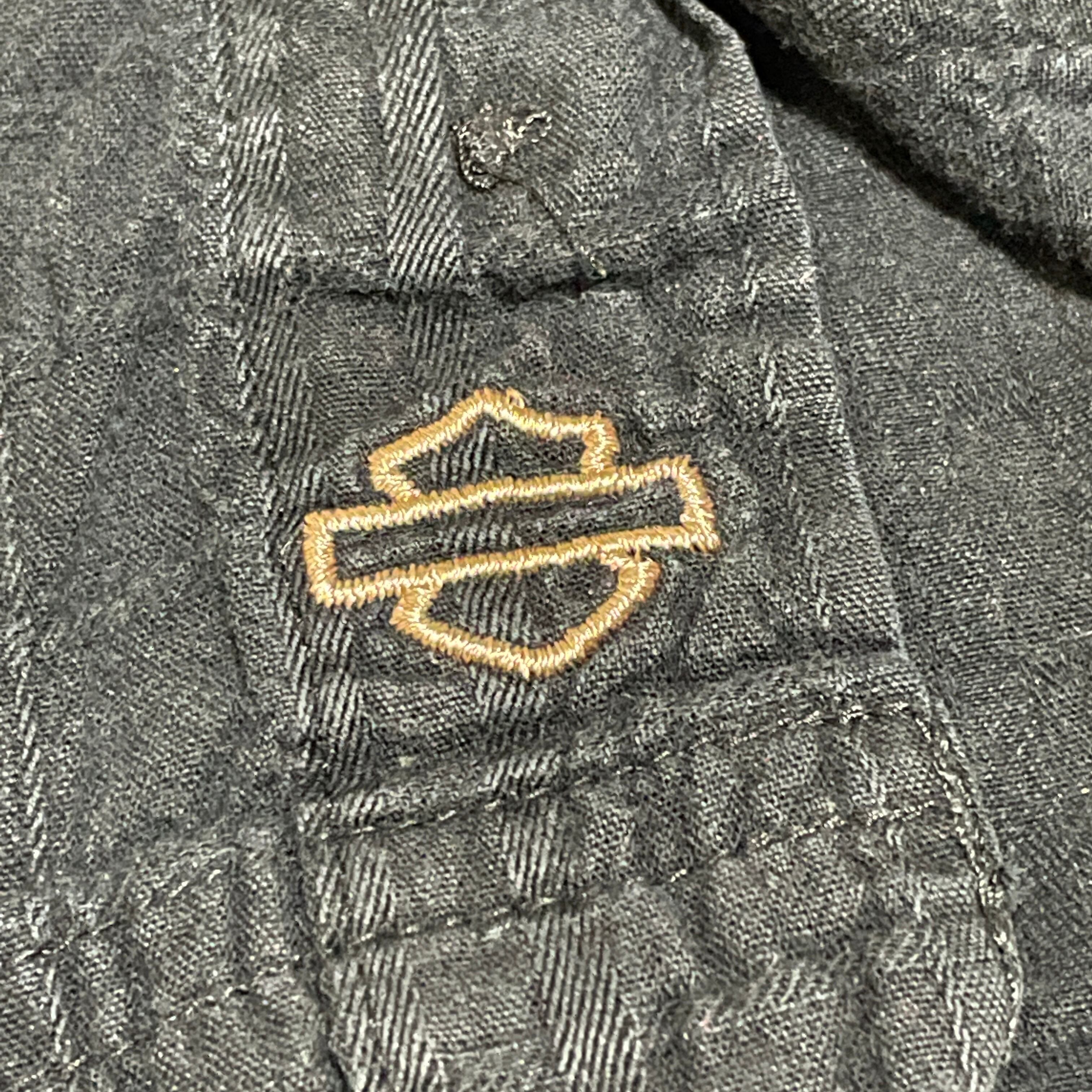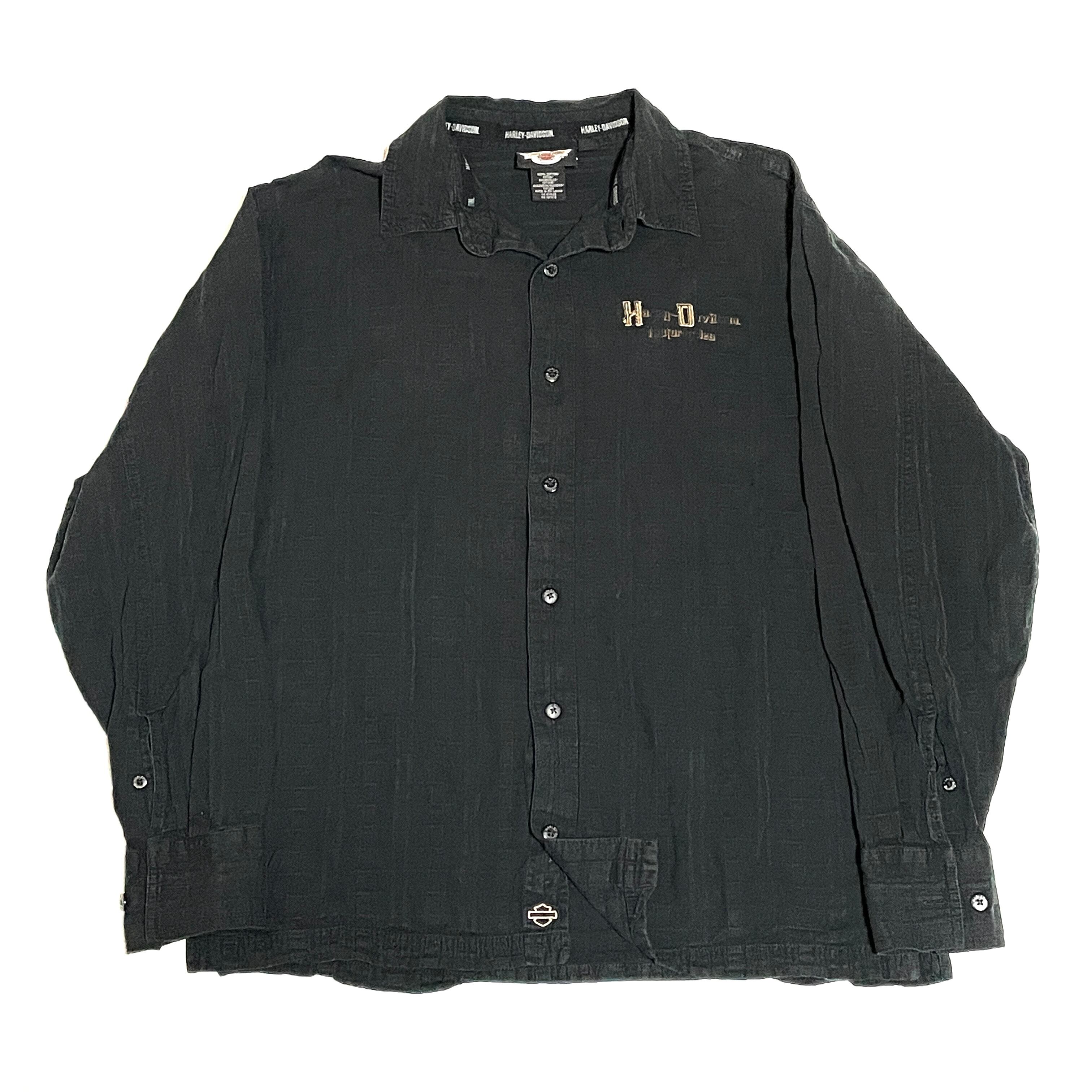 ハーレーダビッドソン ビンテージ 長袖シャツ ロングスリーブ Harley-Davidson(黒,L)春夏用シャツ