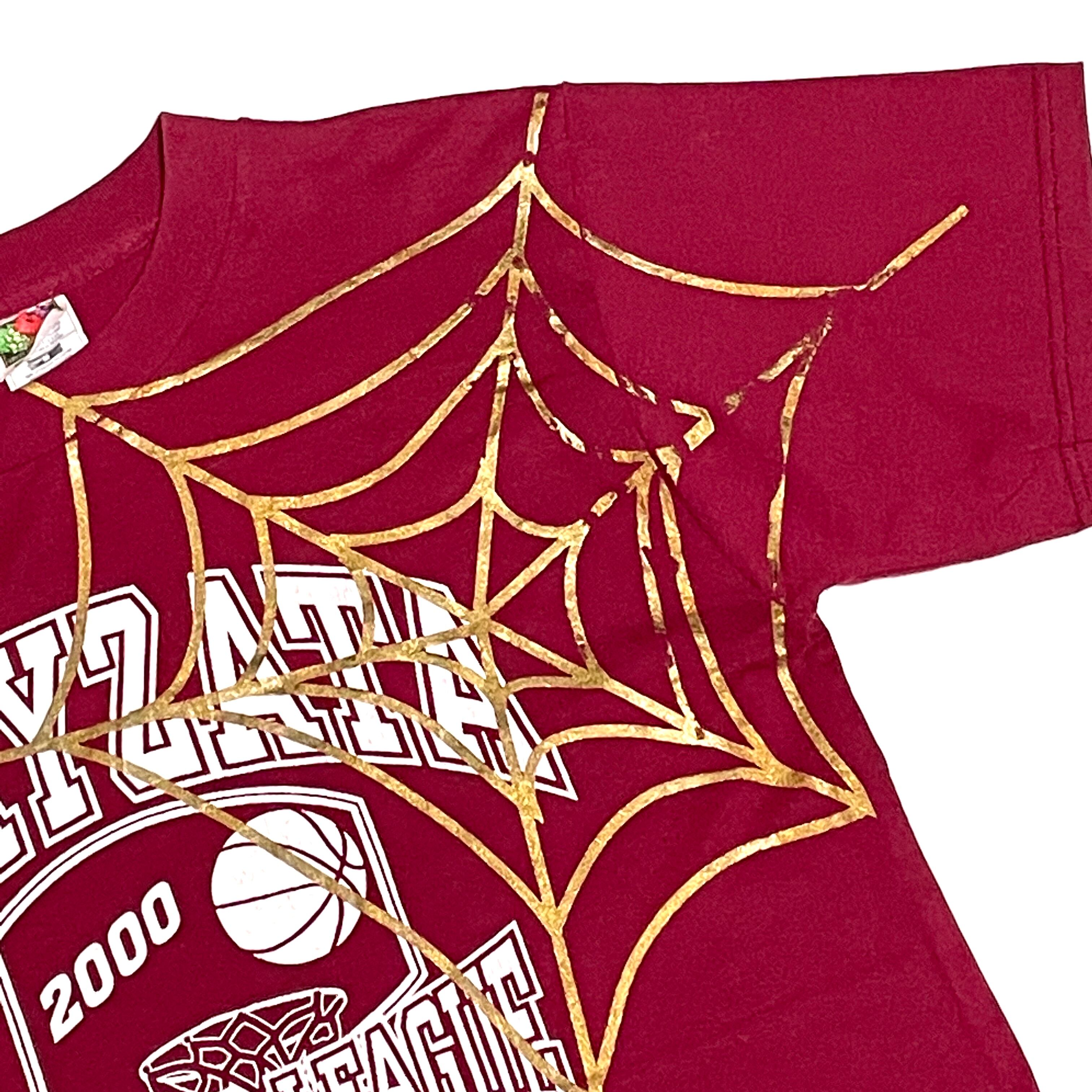 激レア 00s バスケ×スパイダーウェブ ビンテージ Tシャツ スポーツ系 レアカラー レアプリント 2000 FRUITS OF THE LOOM BEST(ラズベリー,Mサイズ)