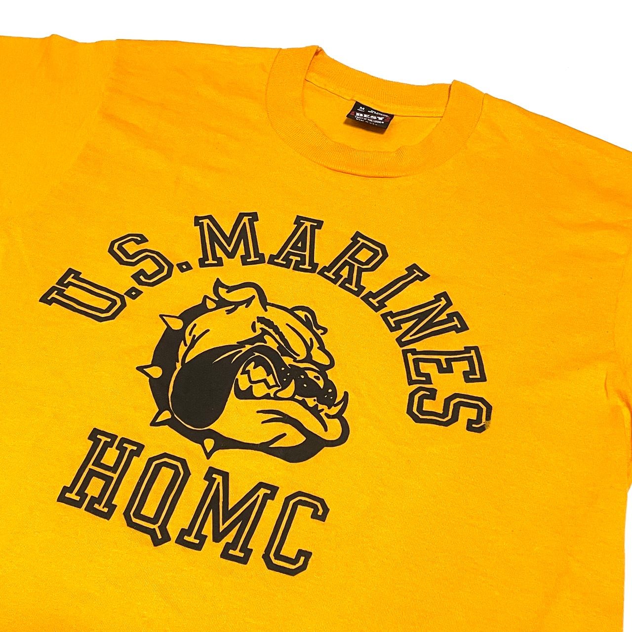 90s 菅田将暉着用 ヴィンテージ ミリタリー アメリカ海兵隊 Tシャツ US MARINERS HQMC(イエロー系 マスタード,M)ブルドッグ FRUITS OF THE LOOM BEST