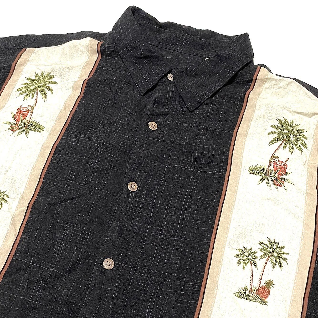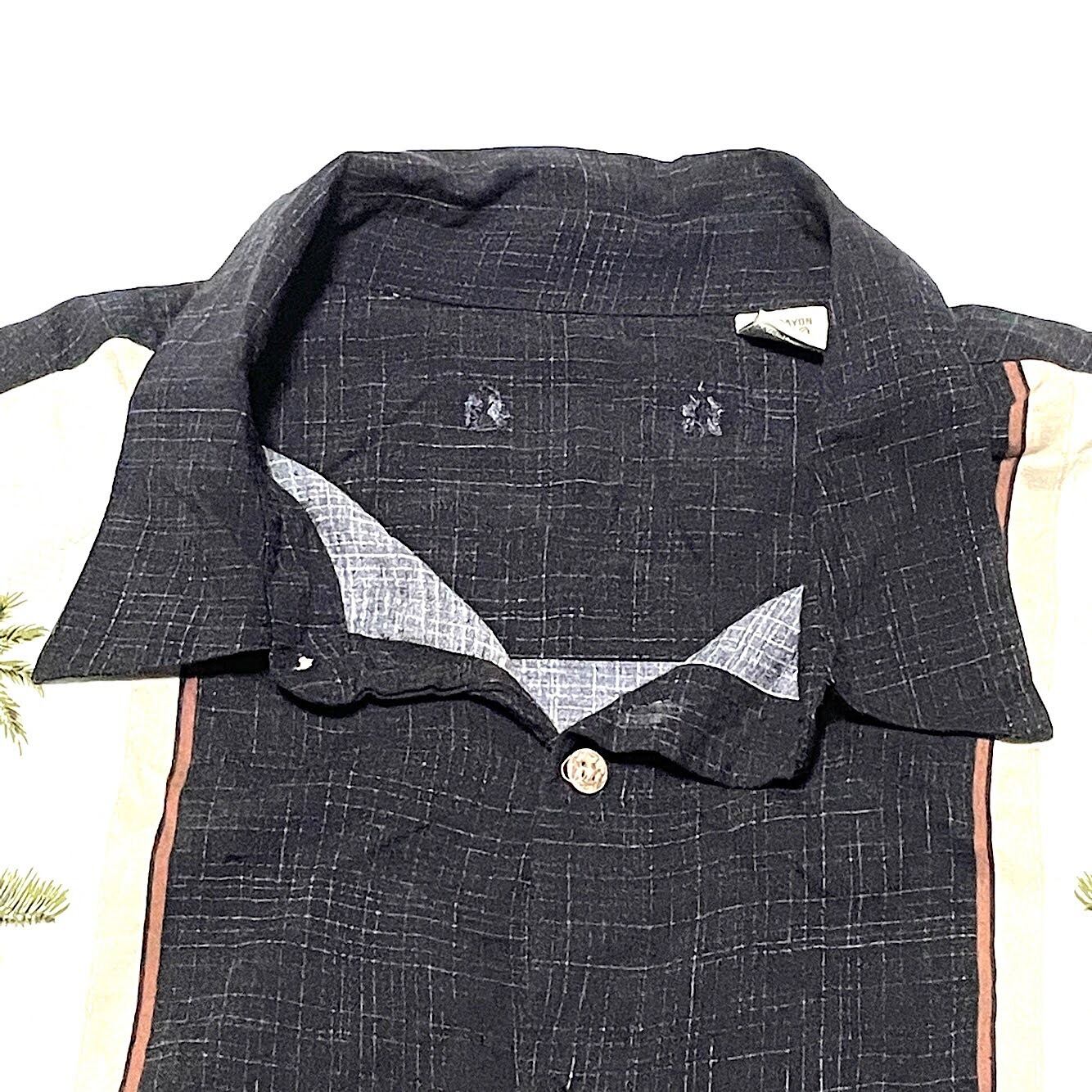 90s ビンテージ レーヨンシャツ スペシャルパターン ビッグサイズ(黒カスリ ツートン,XLサイズ)