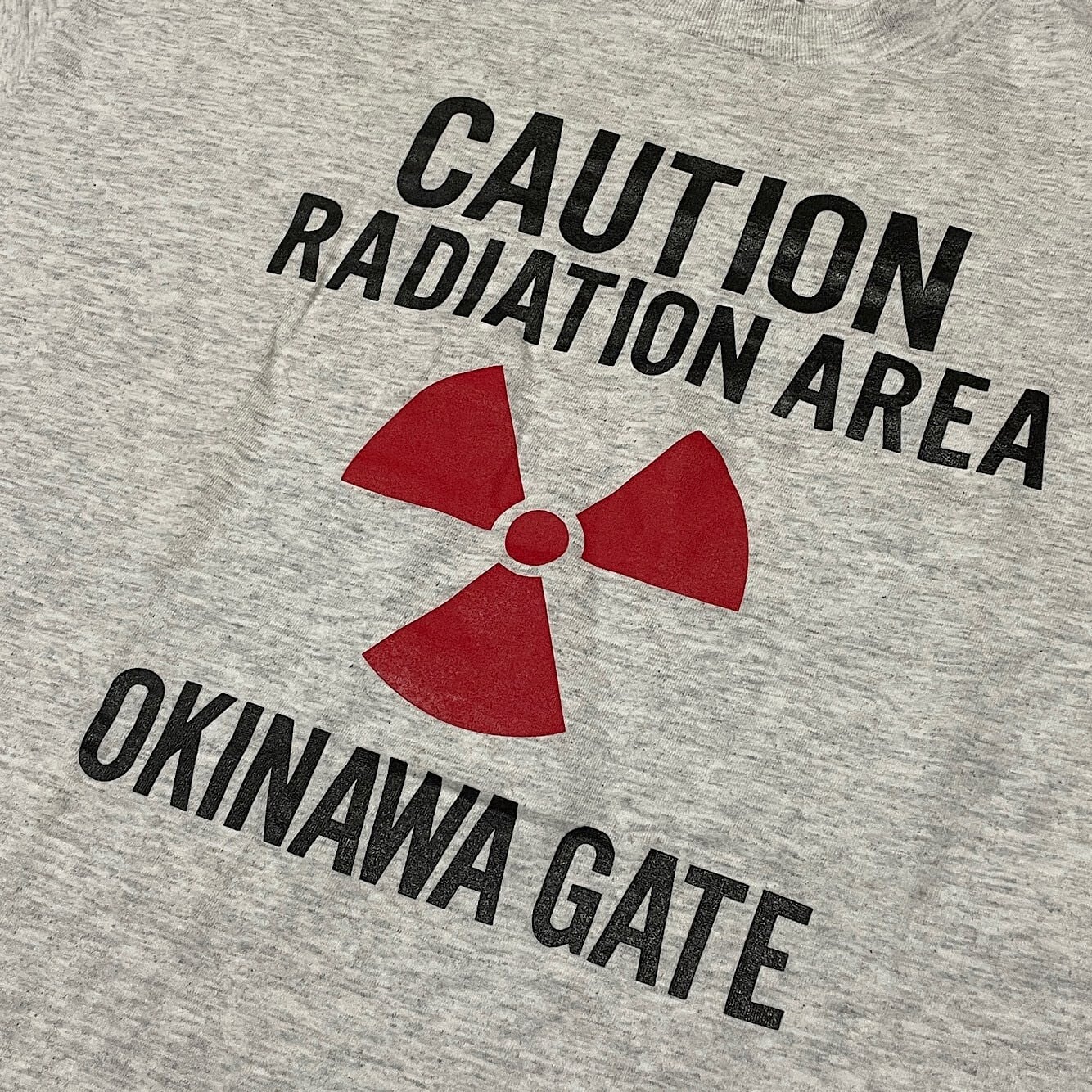 90s 00s 放射線マーク Tシャツ ビンテージ 沖縄 バンドT CAUTION RADIATION AREA OKINAWA GATE(霜降りグレー,Lサイズ)ジャズフュージョンバンドArea
