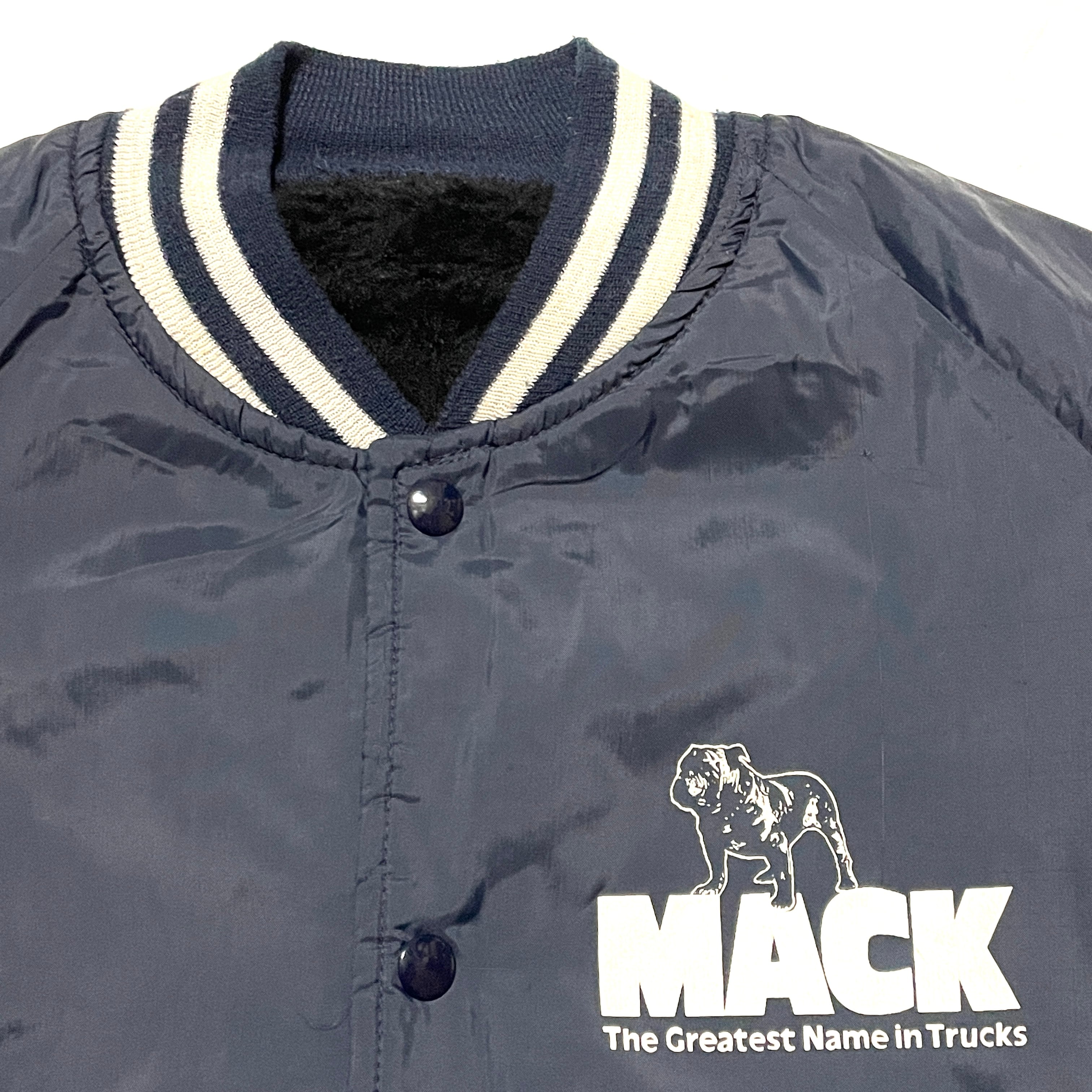 激レア 80s 90s ビンテージ マックトラック ナイロン スタジャン MACK TRUCKS ブルドッグ インナーボア(紺ネイビー,当時のXLサイズ)