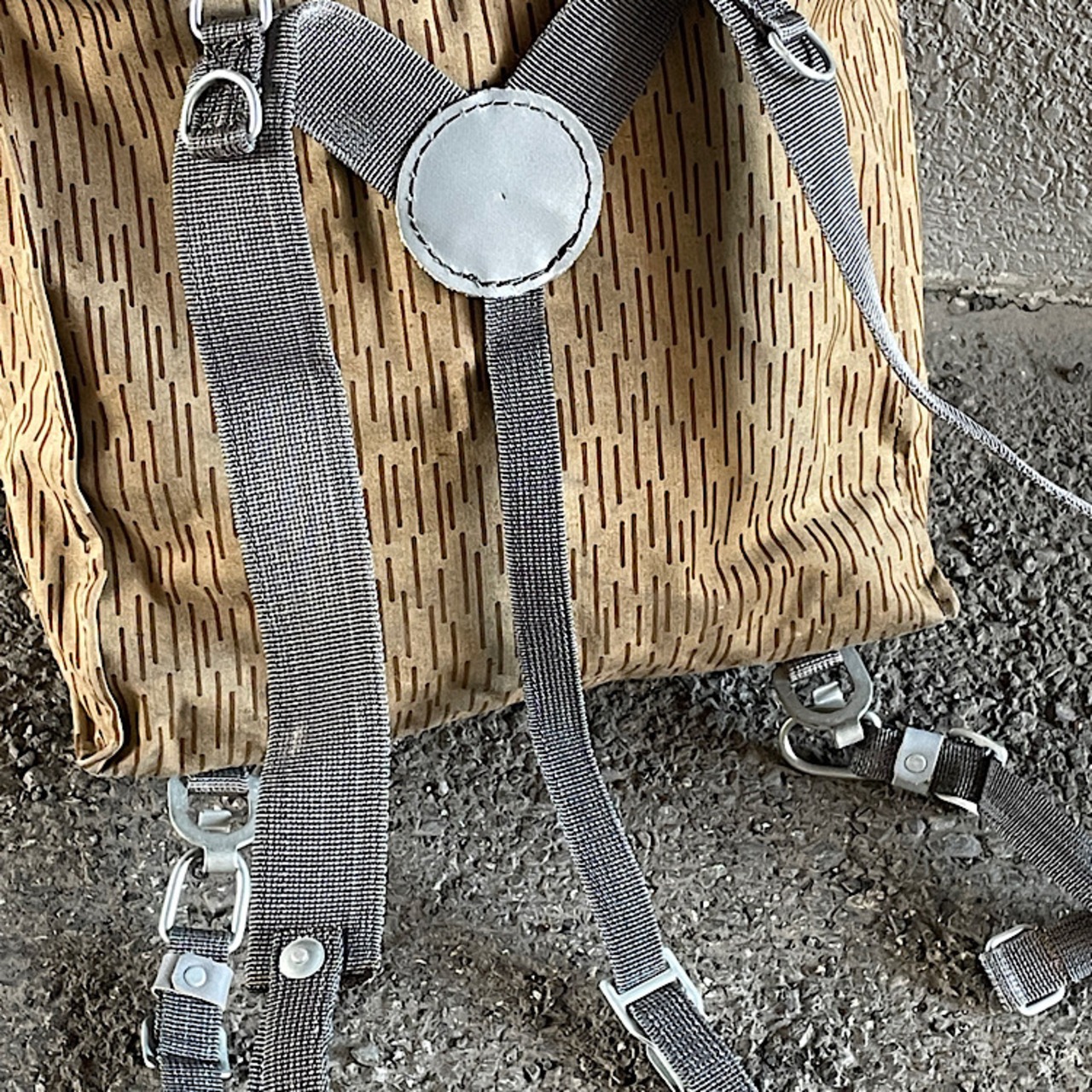 フィールドで1~2日過ごすための必需品を入れるように設計されているバッグで、付属のY型のショルダーハーネスを使用する事でバックパックとして使用できます。