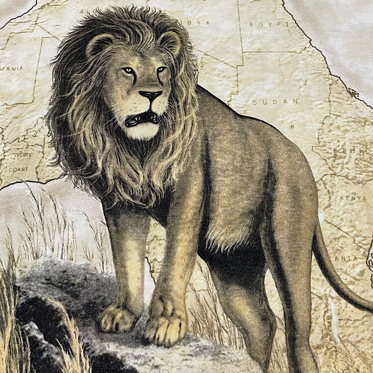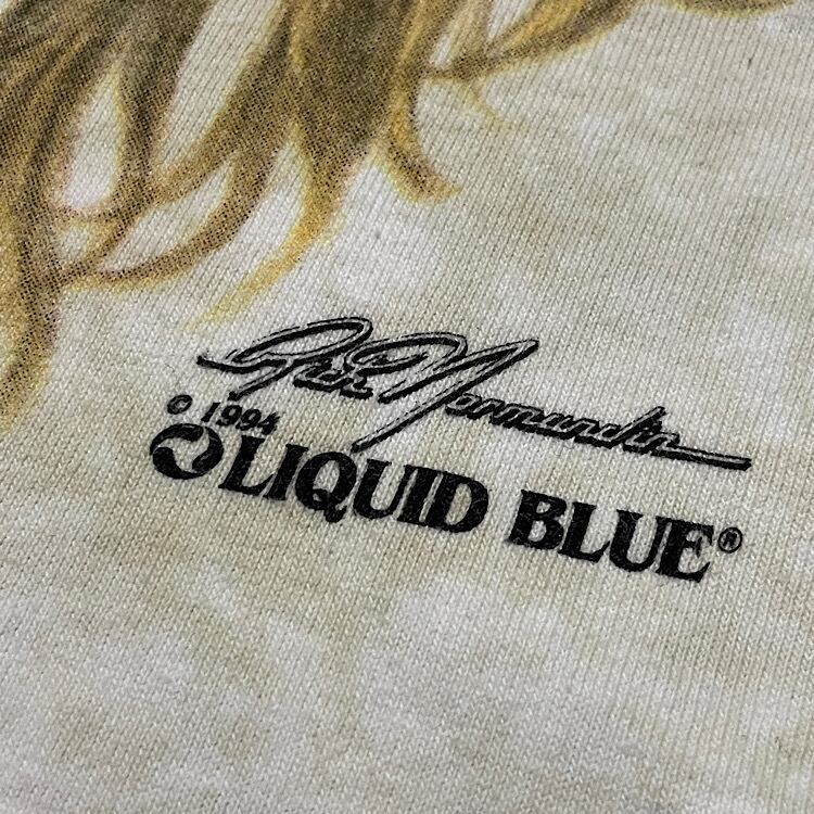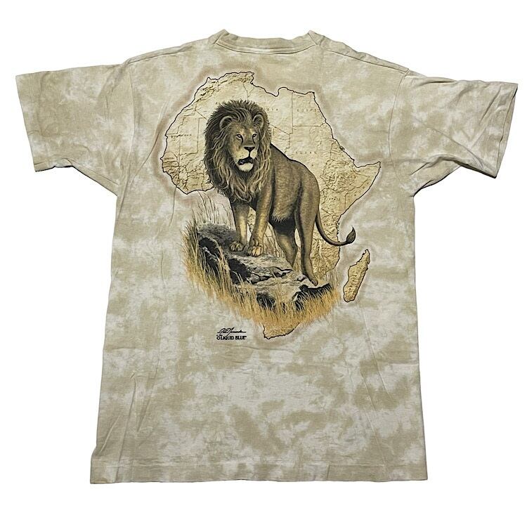 90s LIQUID BLUE アニマルプリントシリーズ 大判ライオン両面プリント ビンテージ Tシャツ ビッグサイズ ©1994(Lサイズ程度)リキッドブルー