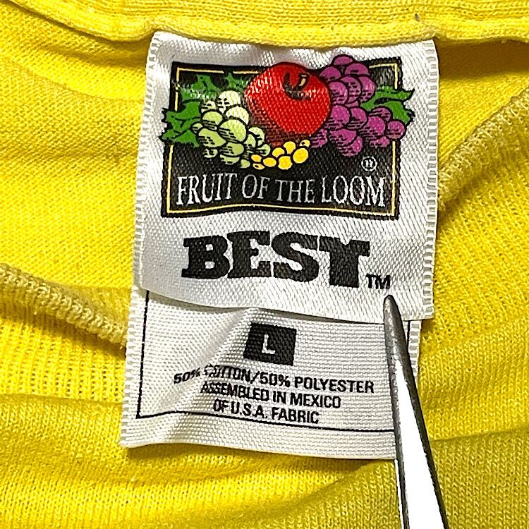 00s ビンテージ アウトドア キャンプ Tシャツ kanata 2000 CAMP FRUITS OF THE LOOM BEST(黄色,Lサイズ)パタゴニア 袖裾ダブルステッチ