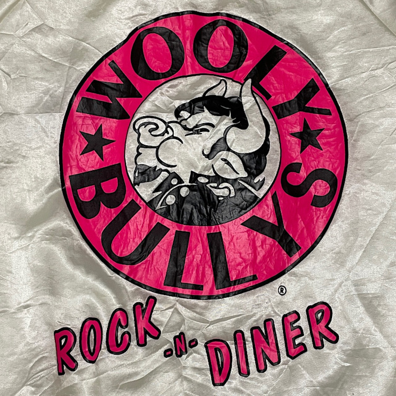 90s ビンテージ ナイロンジャケット スタジャン ロックンロール USA製 中綿なし HARTWELL WOOLY BULLYS ウーリー・ブリー(シルバー,XLサイズ)毛の生えた獰猛な奴