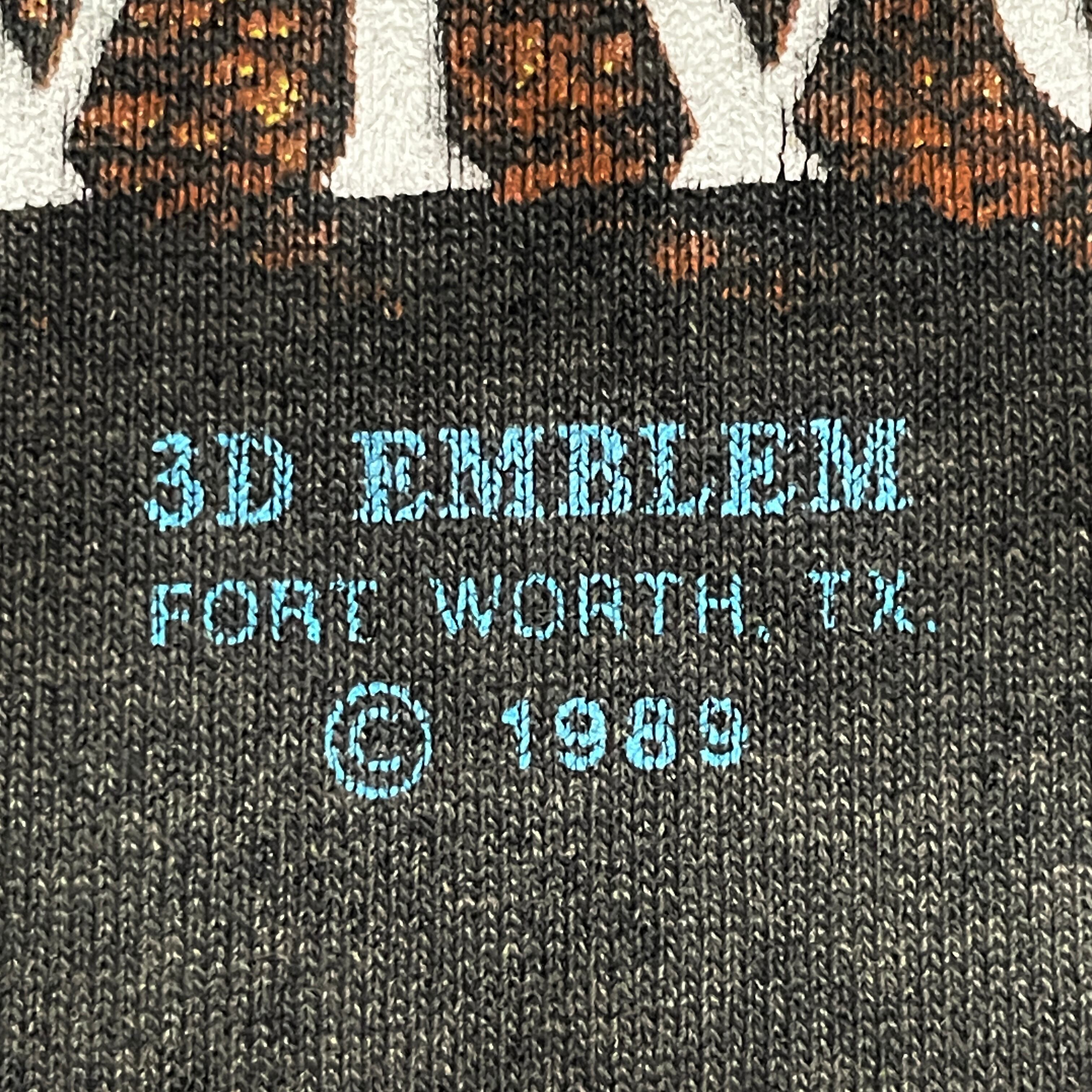 希少 80s 3D EMBLEM ハーレーダビッドソン Tシャツ ビンテージ 狼オオカミ USA製 ©1989(黒)HARLEY DAVIDSON SURVIVORS FORT WORTH, TX.