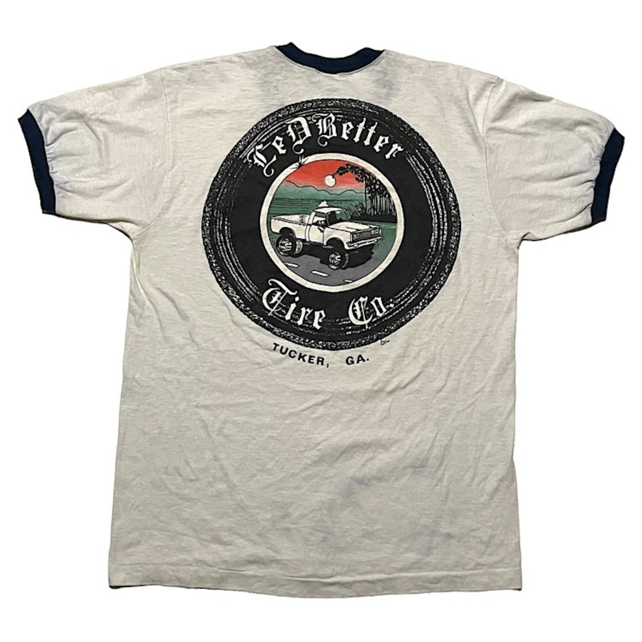 モーター系スペシャル 80s Sport-T STEDMAN MINI TRUCKER CLUB 両面プリントTシャツ ビンテージ リンガーT Tシャツ(白×ネイビートリム,当時のLサイズ表記)