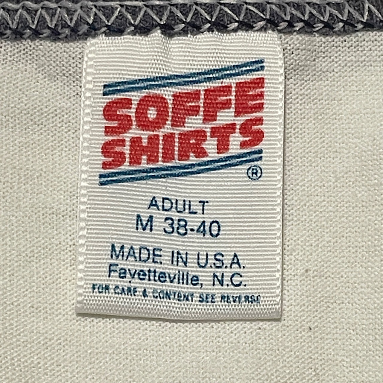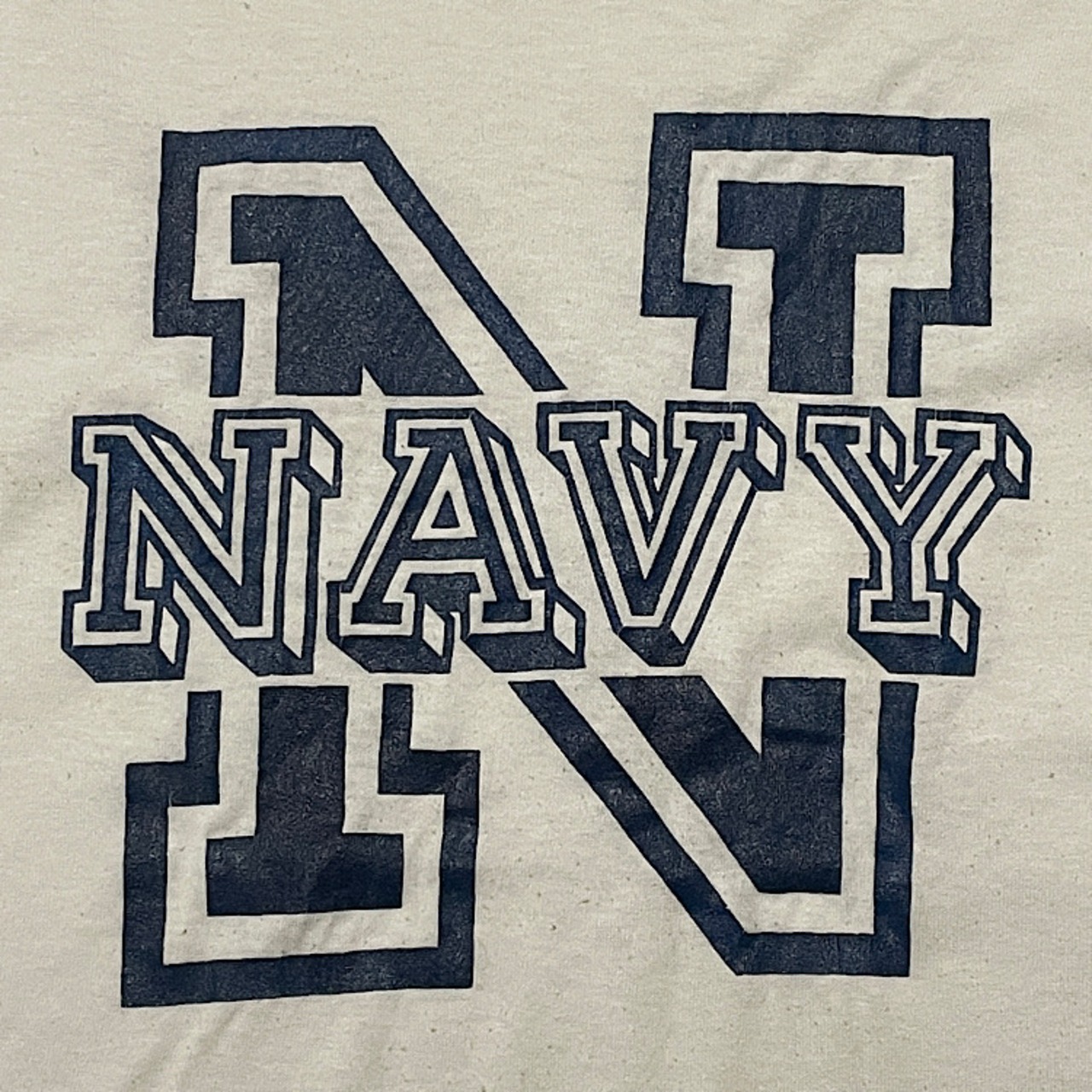 80s US NAVY ビンテージ リンガーT Tシャツ SOFFE SHIRTS USA製 ミリタリープリント(白×ネイビートリム,Mサイズ)