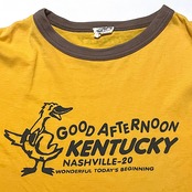 ビンテージ ケンタッキー リンガーT Tシャツ FIRST PARKING フライドチキン 両面プリント(黄色×茶トリム,Mサイズ)