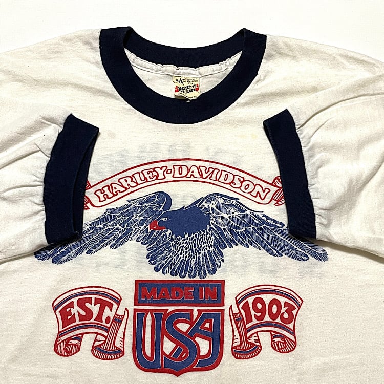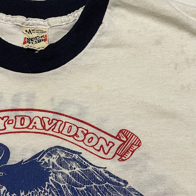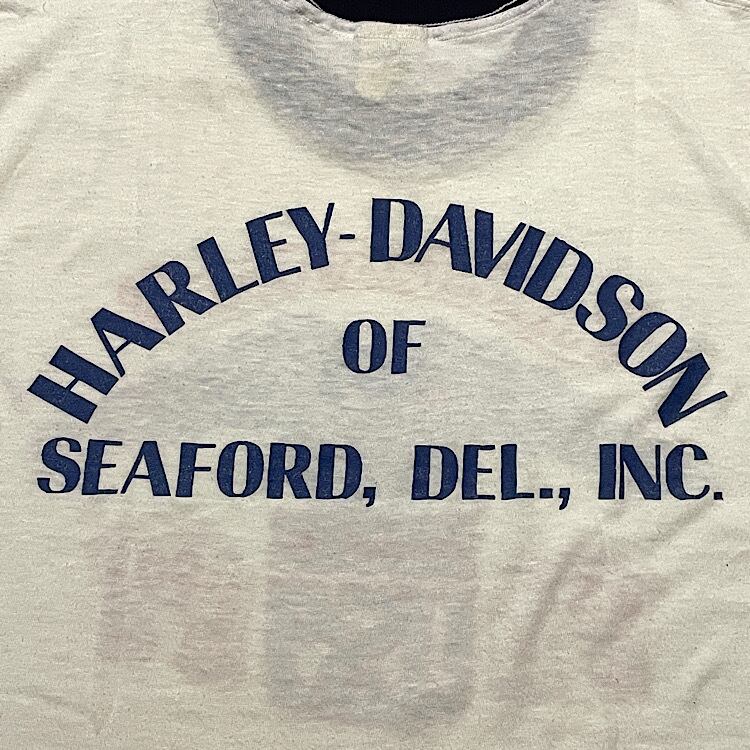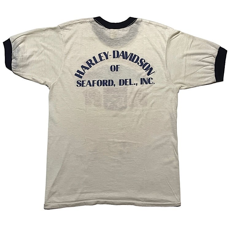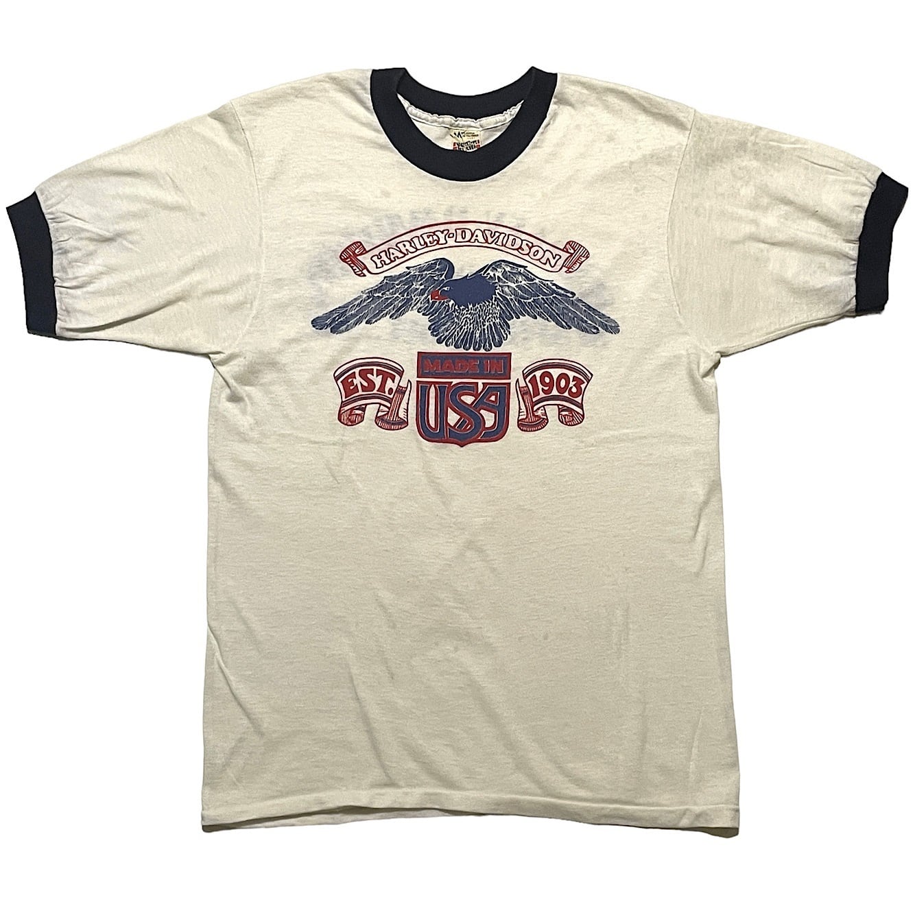 希少 70s 80s ハーレーダビッドソン ビンテージ リンガーT Tシャツ USA製 Harley-Davidson両面プリント リバティータンクモデル SCREEN STARS(白×ネイビートリム,Mサイズ)