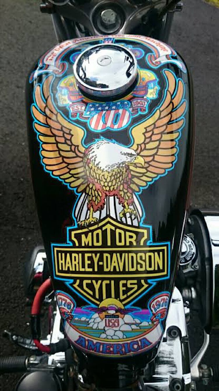 アメリカ本国では”バイセンテニアル”とも呼ばれ、1776年にアメリカが建国、その200年後にあたる1976年に記念して作られたハーレーのデカール、「リバティータンク」