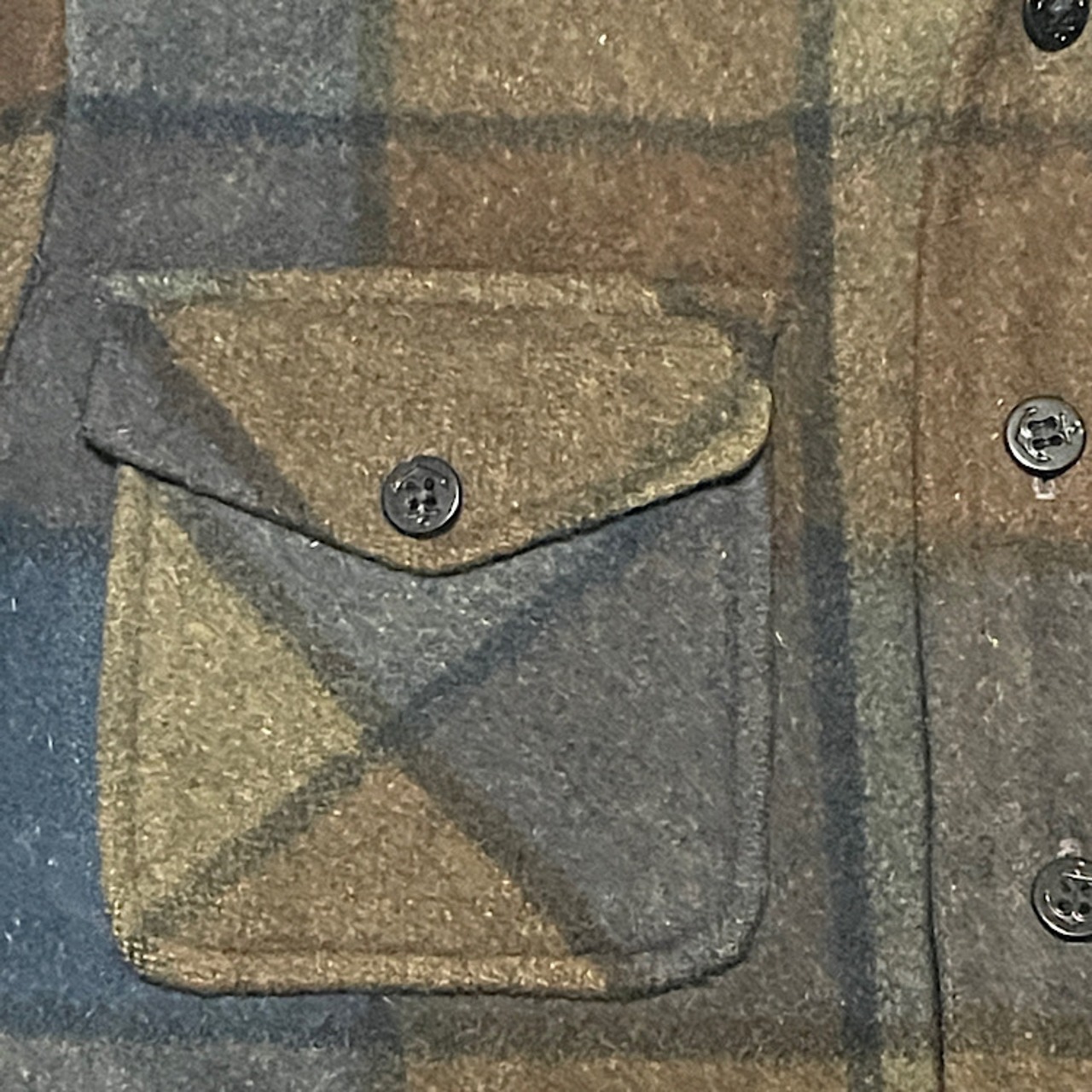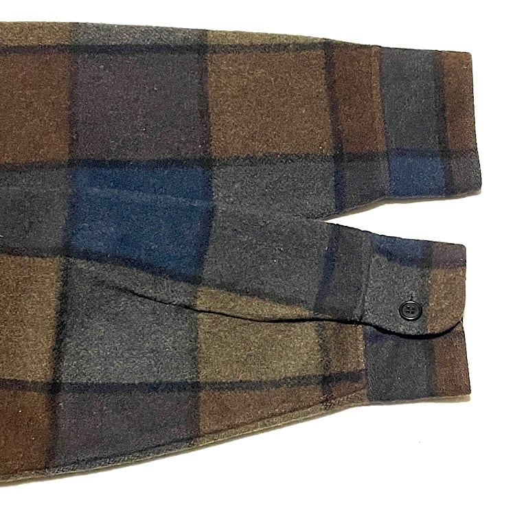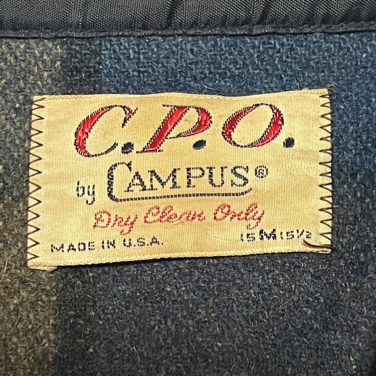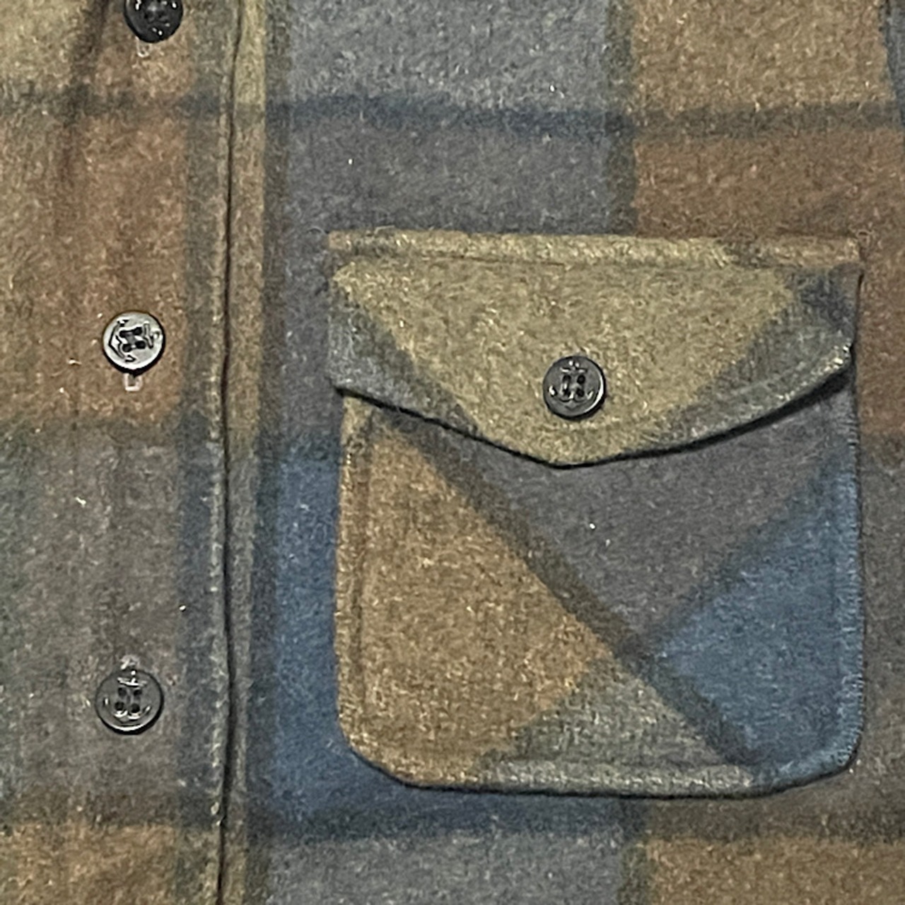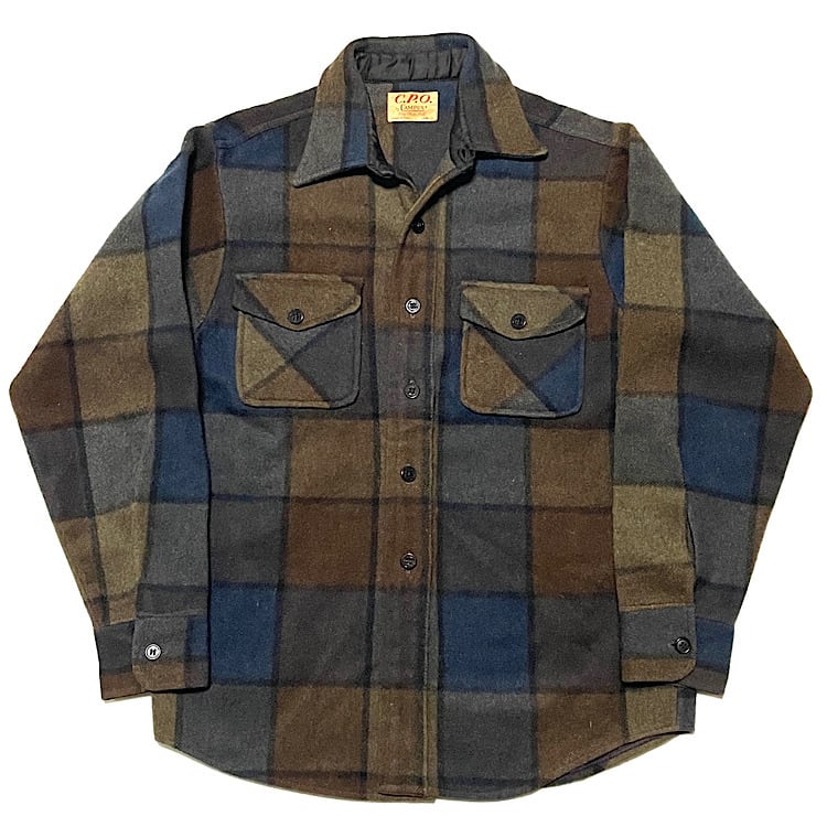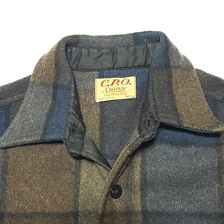 スペシャルカラー 60s CAMPUS ビンテージ CPOシャツ 厚手ウールシャツ キャンパス刺繍タグ アンカーボタン(ダークブラウンベースチェック柄,Mサイズ)スペシャルパターン アースカラー
