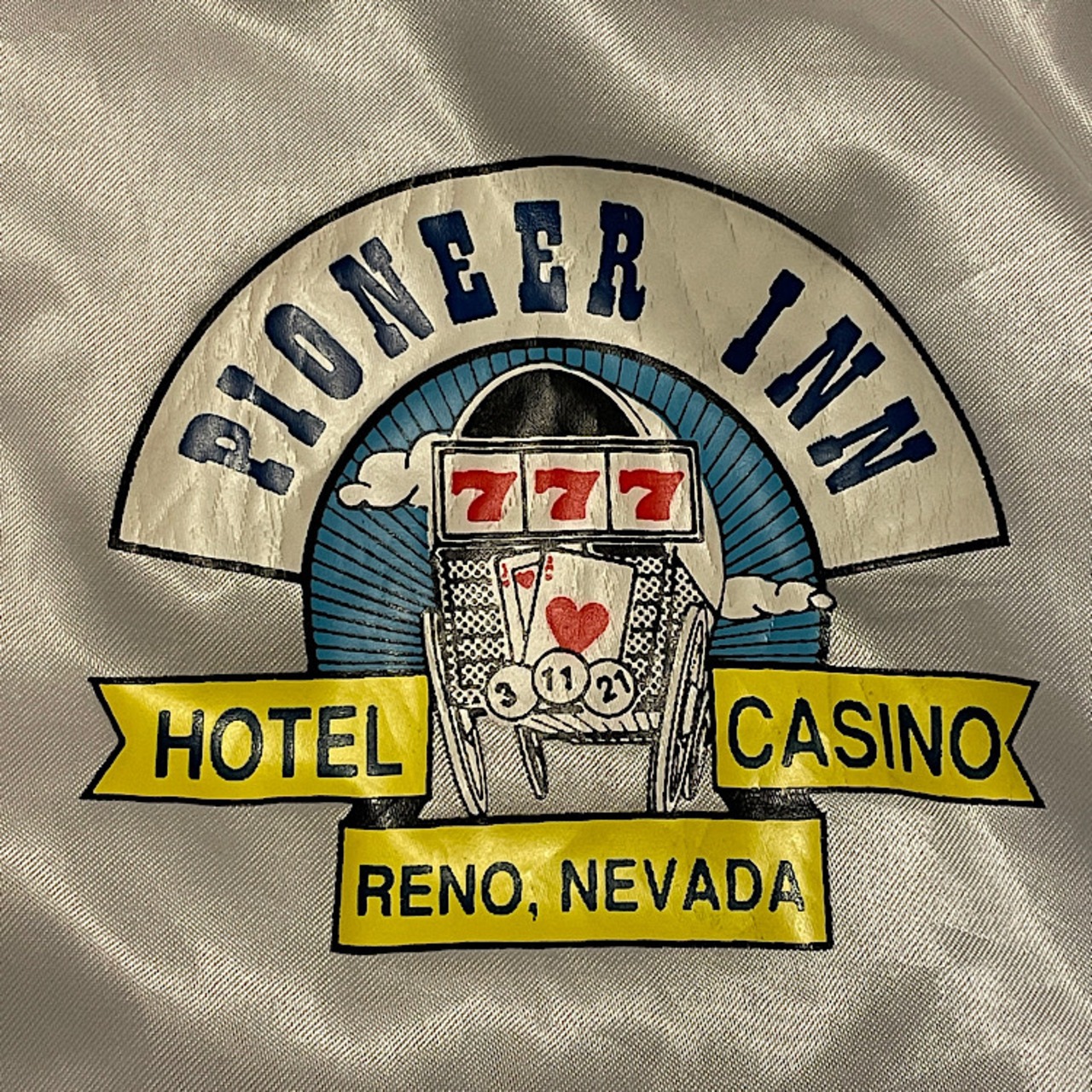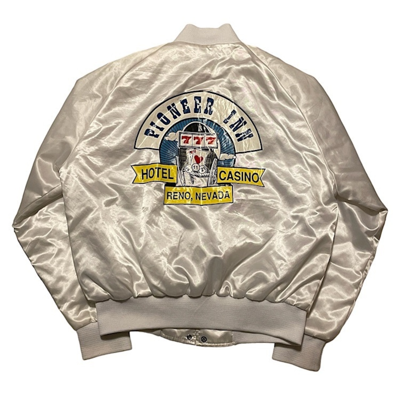 90s ビンテージ カジノ 中綿入り ナイロンジャケット スタジャン USA製 ブラックジャック777(シルバー,Mサイズ)HOTEL CASINO RENO,NEVADA
