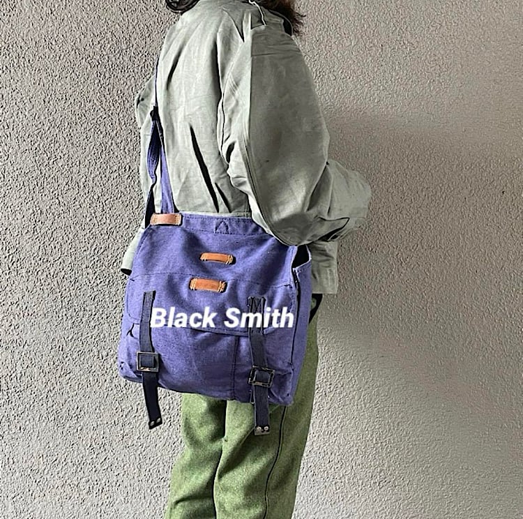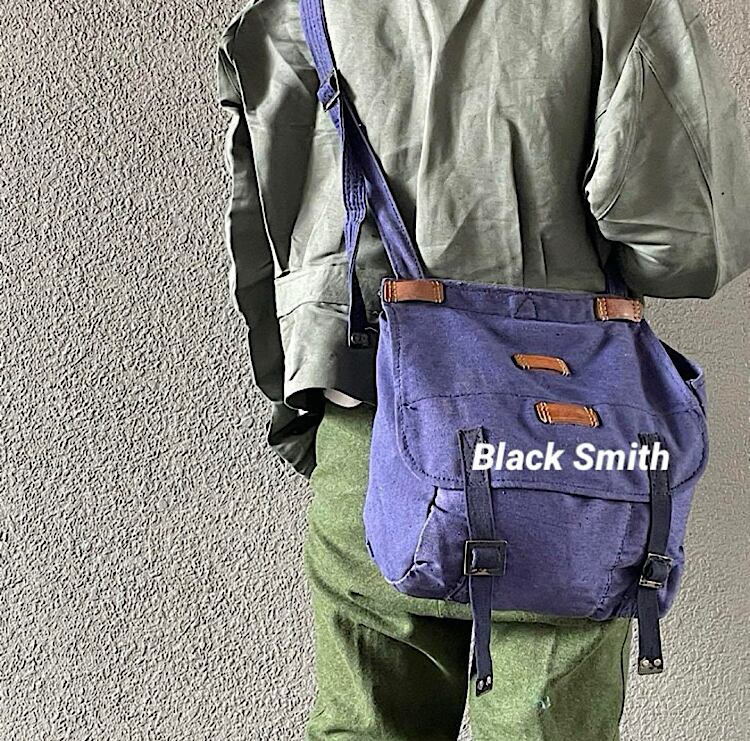 ユーロミリタリー ビンテージ キャンバス ショルダーバッグ ルーマニア軍 デッドストック 軍放出品 軍物 軍モノ(インディゴブルー,ネイビー)①