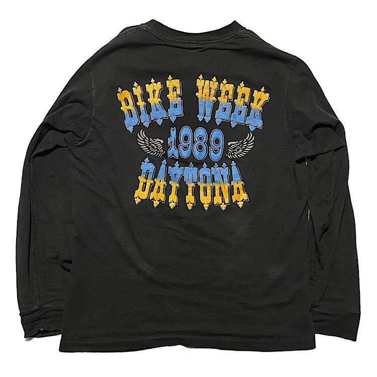 80s ビンテージ ハーレーダビッドソン ロンT Tシャツ DAYTONA BIKE WEEK 1989(黒,当時のLサイズ相当 現行Mサイズ程度)