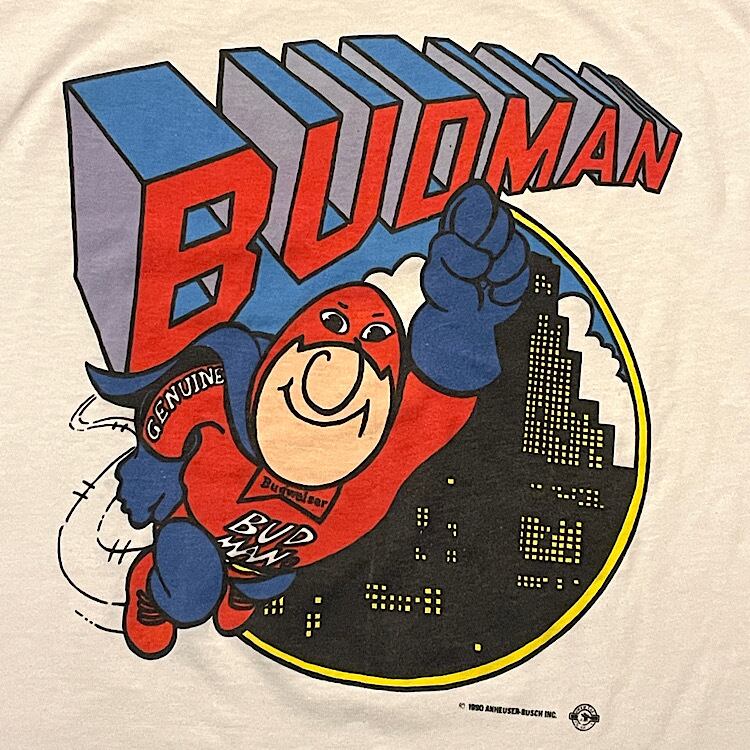 90年代のオールドバドワイザーの BUDMAN プリント半袖Tシャツです。