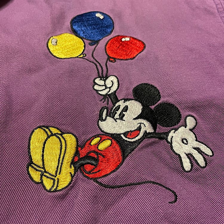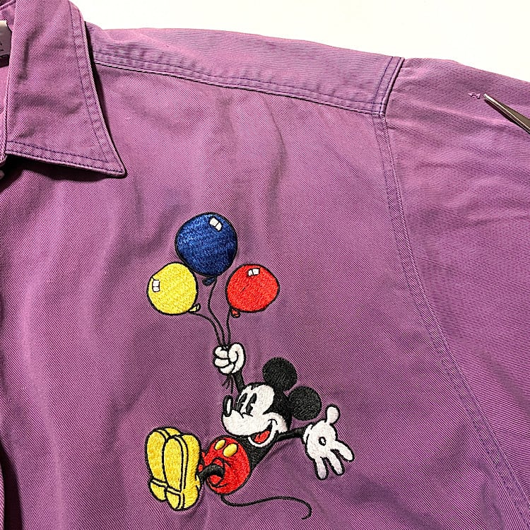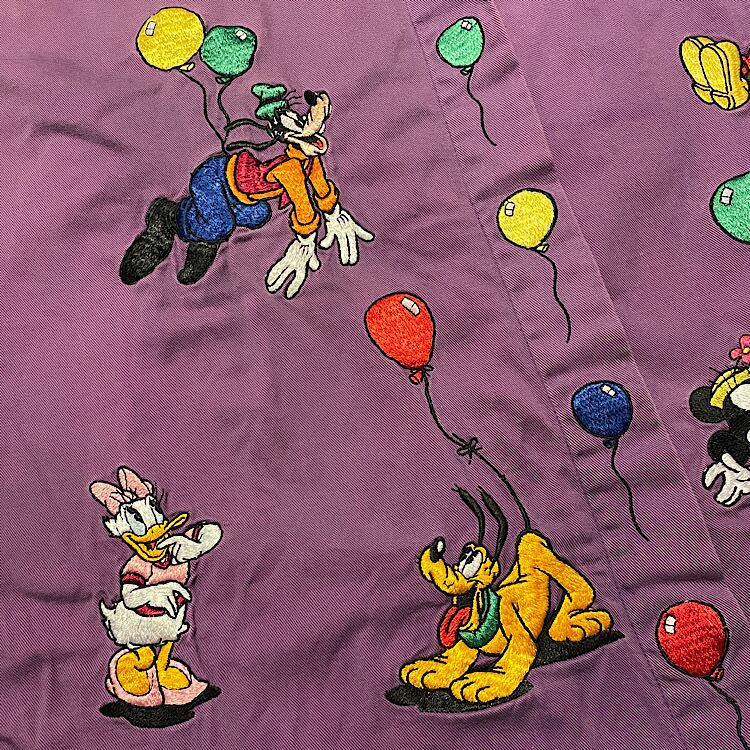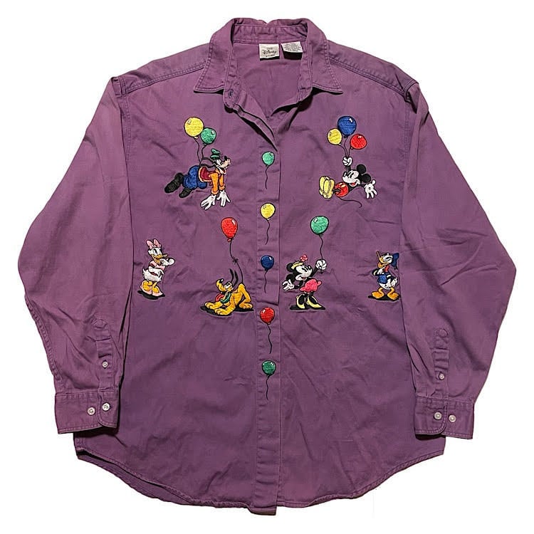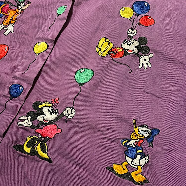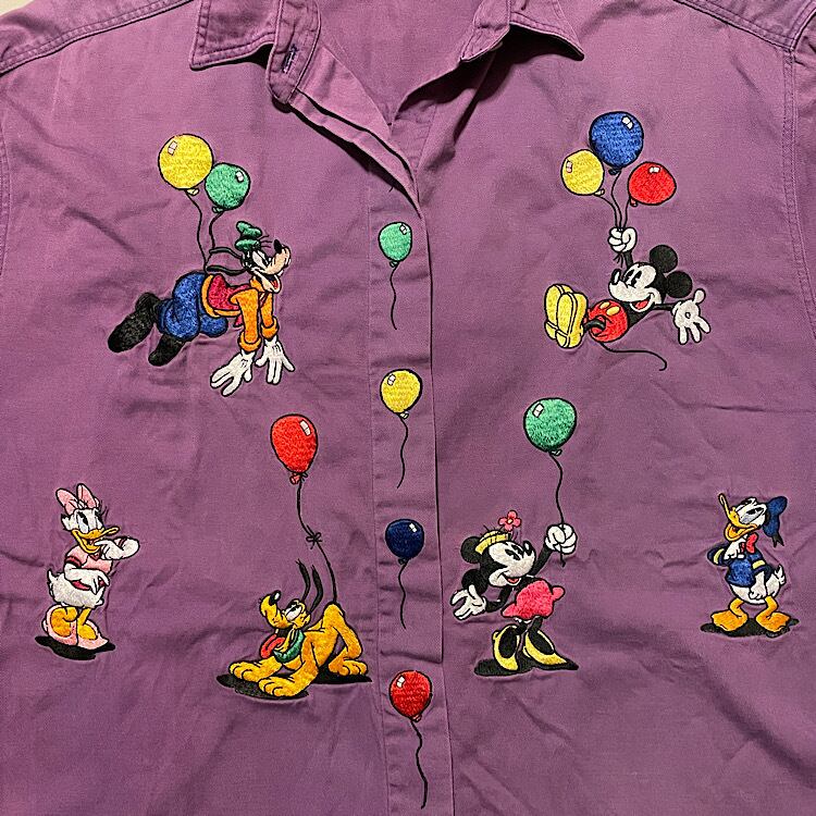 激レア 90s ディズニー刺繍 ミッキー グーフィー ミニー ドナルド プルート ビンテージ 長袖シャツ(レアカラー紫パープル,XLサイズ)Disney