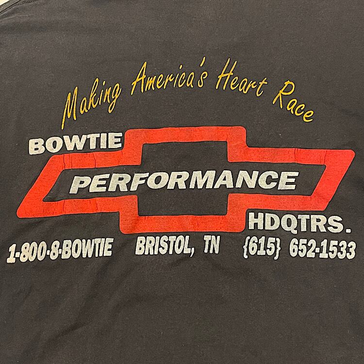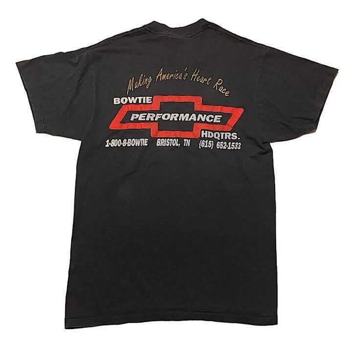 90s シボレー ビンテージ Tシャツ ホットロッド ドラッグレース レーシング BOWTIE PERFORMANCE HDQTRS ONEITA ブリストルモータースピードウェイ BRISTOL Motor Speedway(黒,Mサイズ)袖裾シングルステッチ
