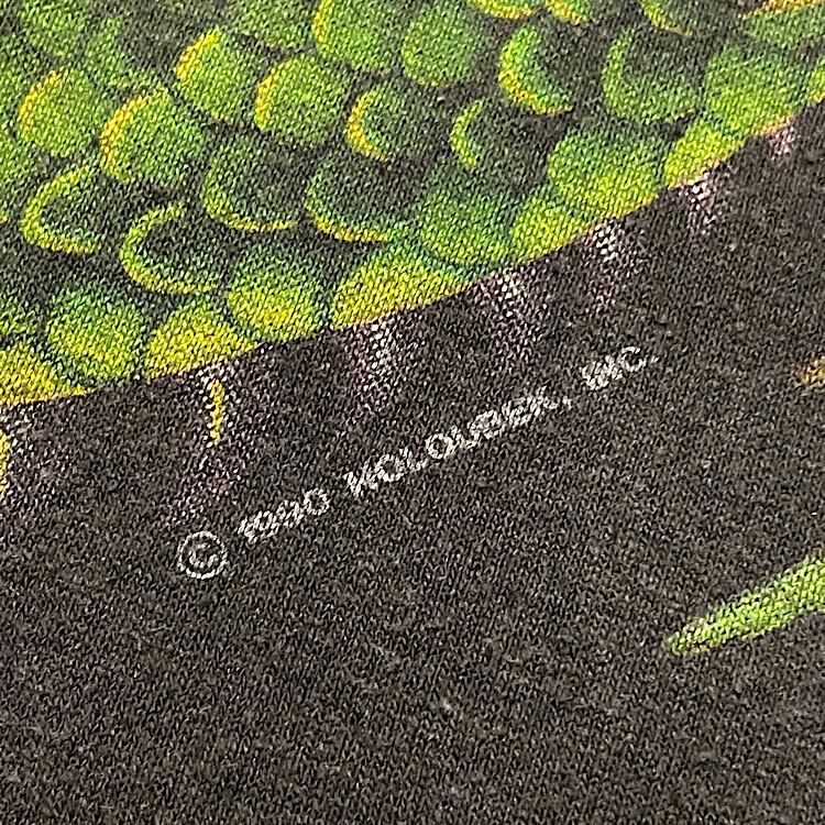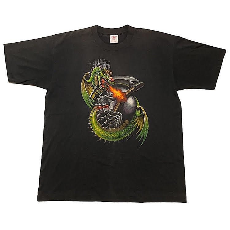 90s ビンテージ ハーレーダビッドソン Tシャツ ドラゴン×死神スカル USA製 HOLOUBEK 1990(黒,XLサイズ)袖裾シングルステッチ