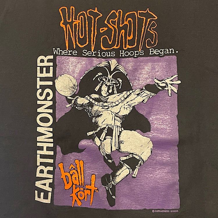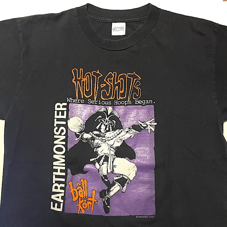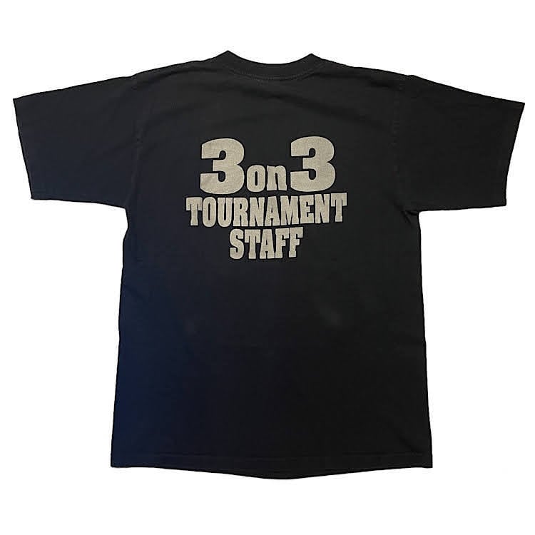秀逸プリント 90s ビンテージ バスケ Tシャツ alore 両面プリント 3on3(黒,Lサイズ)袖裾シングルステッチ