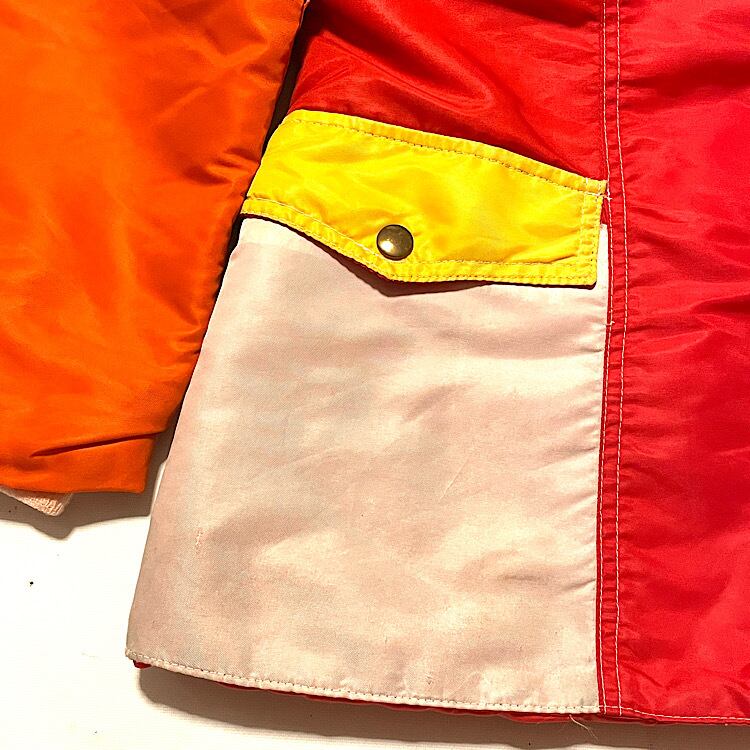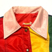 70s ビンテージ クレイジーパターン ナイロンジャケット ヒッピー ピーターマックス マルチカラー SCOVILLスナップボタン(レディース合わせ,メンズS-Mサイズ)