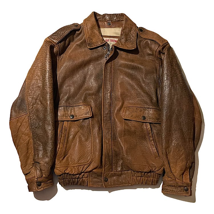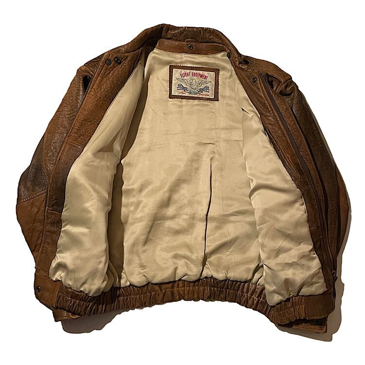 90s 本革ラムレザー A-2タイプ フライトジャケット ボンバージャケット ビンテージ FLIGHT EQUIPMENT(ブラウン,XLサイズ)